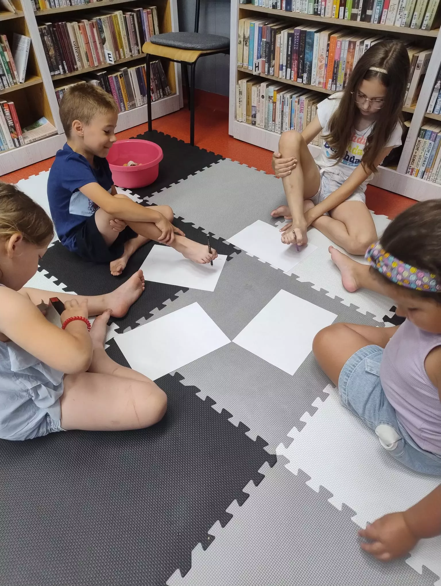 28 czerwca w Filii Bibliotecznej w Łagiewnikach Małych odbyły się zajęcia literacko-plastyczne rozpoczynające wakacje - zajęcia "na boso"