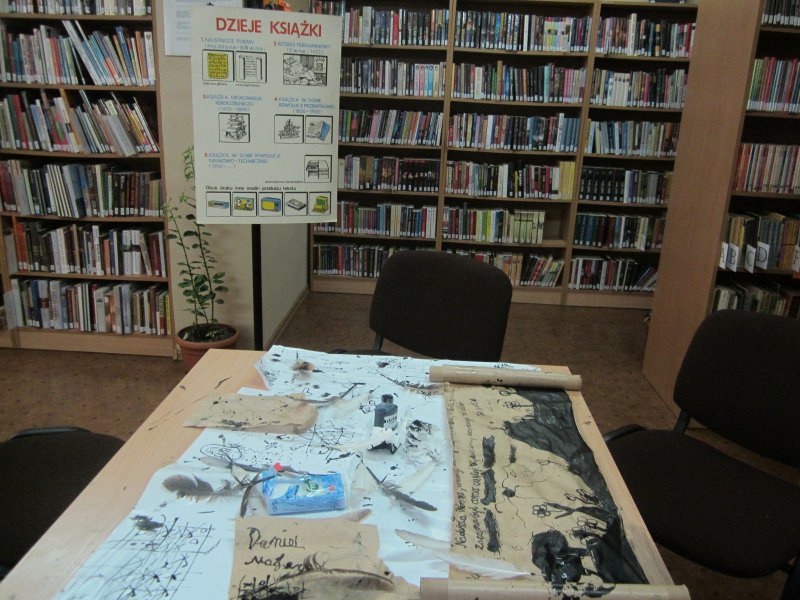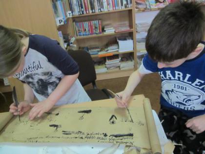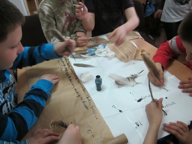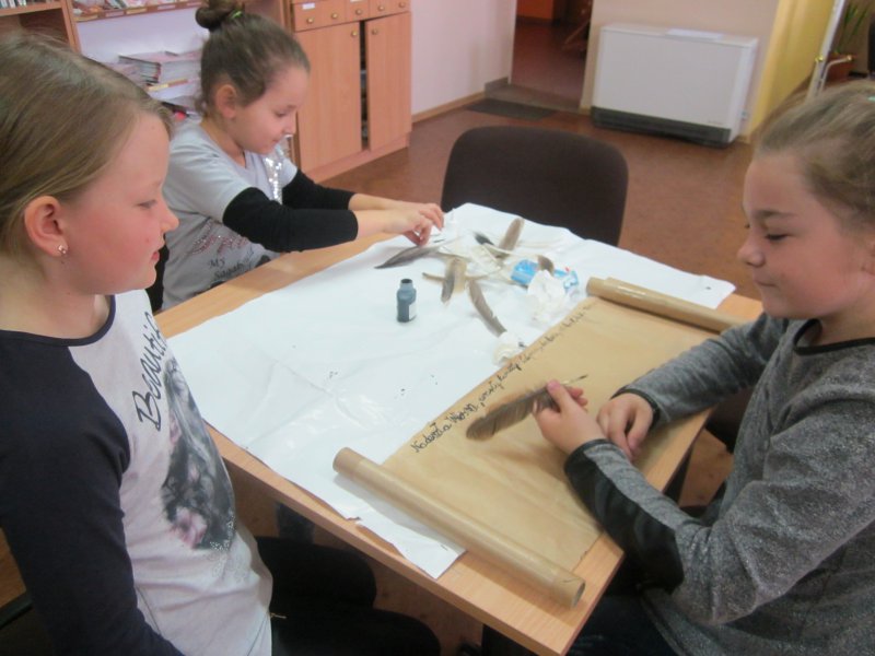 24 kwietnia 2015r w Bibliotece w Lisowicach odbyły się warsztaty związane z dziejami książki na przestrzeni lat . Zaproszeni uczniowie z kl. II mieli okazję poznać różne formy pisania zaczynając od starożytności do współczesności: na tabliczkach glinianych, na kamieniu , na pergaminie.Dwóch uczniów zgłosiło się do napisania tekstu współczesnej bajki i powieści, którą na koniec odczytali.