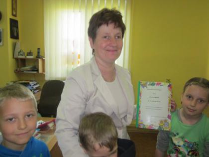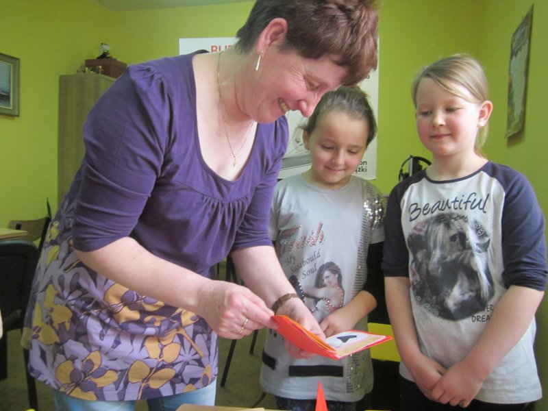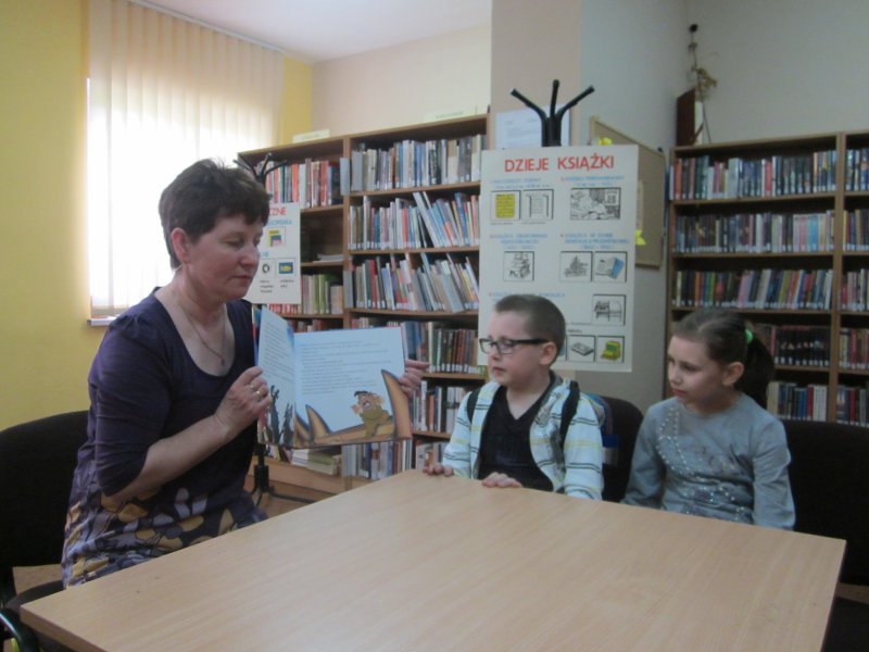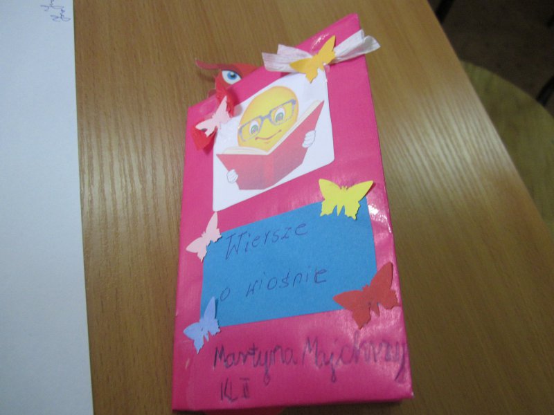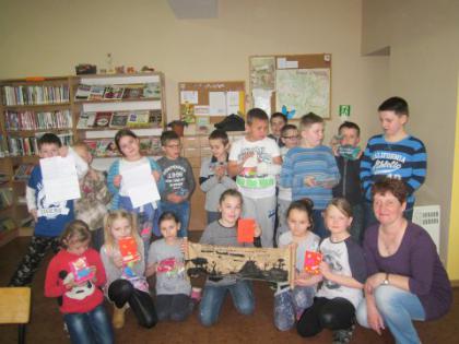 Spotkanie to odbywało się w ramach obchodów Tygodnia bibliotek oraz dnia bibliotekarza. Uczniowie wręczyli z tej okazji Bibliotekarce laurkę z podziękowaniem oraz piękny upominek.