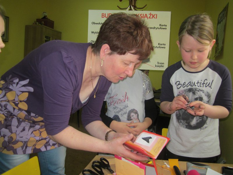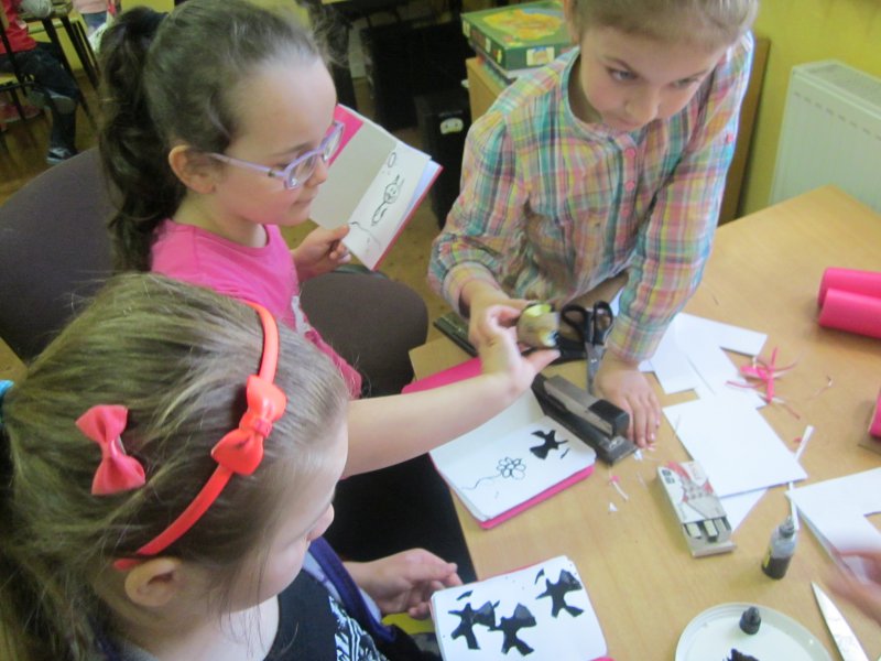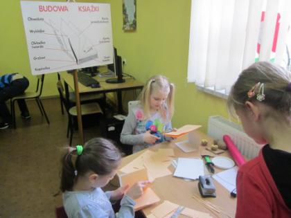 Znalazło się na warsztatach również stanowisko tworzenia książki by każdy poznał z jakich elementów jest zbudowana. To bardzo twórcze i miłe spotkanie odbyło się z okazji Święta Książki i Praw Autorskich.