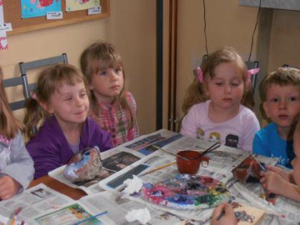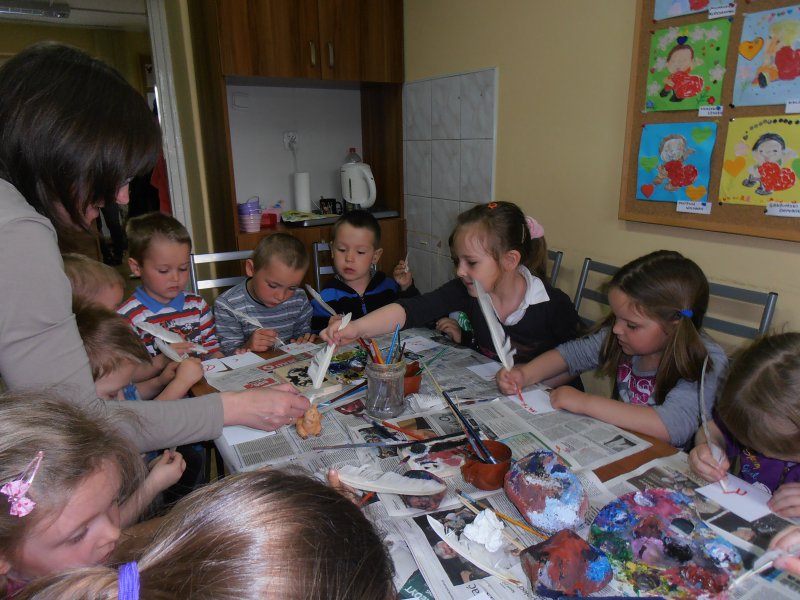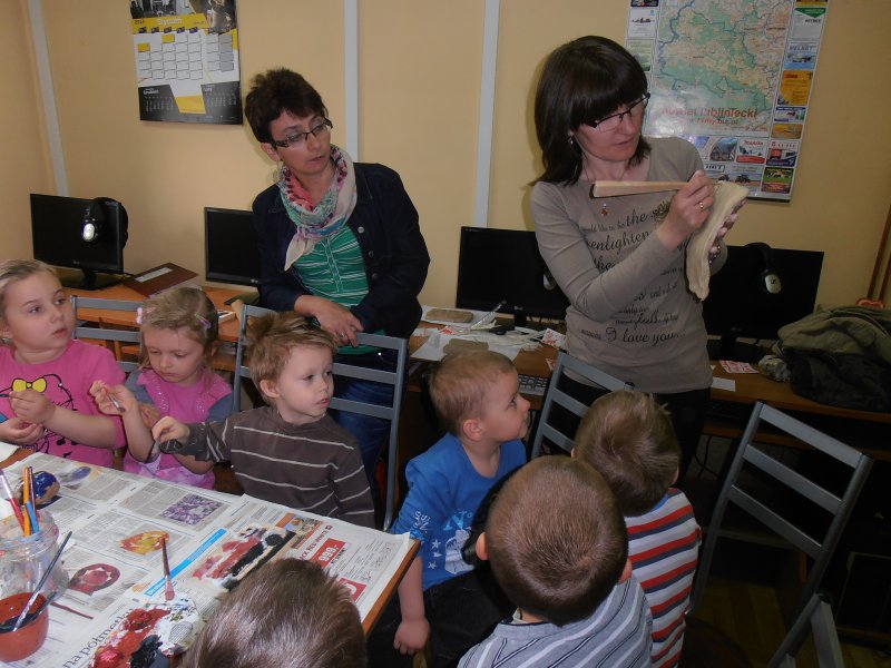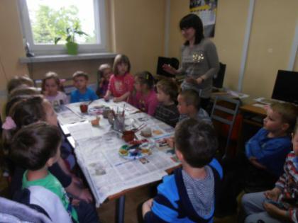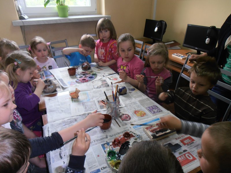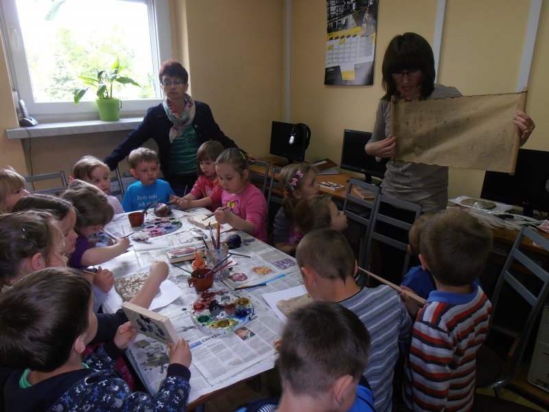 Zorganizowana 12 maja z okazji Tygodnia Bibliotek lekcja biblioteczna " Od kamienia do kodeksu", w której udział wzięły dzieci z przedszkola w Pawonkowie dotyczyła materiałów i narzędzi pisarskich stosowanych na przestrzeni dziejów. Dzieci  poznały historię książki, dowiedziały się jak dawniej ludzie radzili sobie z zapisywaniem informacji.  Osobiście spróbowały jak trudno pisze się na kamieniu, tabliczce glinianej, drewnianej czy woskowej. Najbardziej podobało się dzieciom pisanie piórkiem i atramentem. W czasie zajęć powstały "niezwykłe małe dzieła",  które pozostały na pamiątkę w bibliotece.