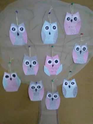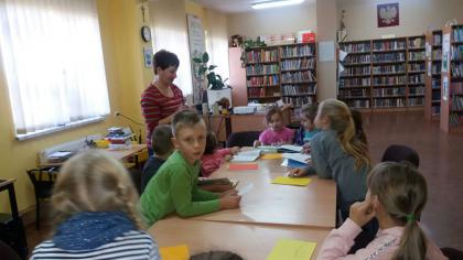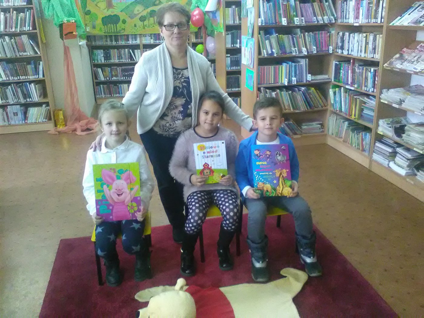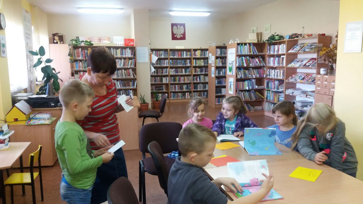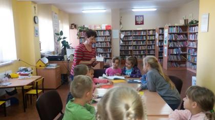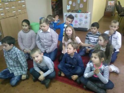 Uczniowie kl. I. zapoznali się z bajką o przygodach Maszy i Niedźwiedzia oraz książeczką pt. Wizyta w bibliotece. Dla dzieci przygotowano zadania, podobne do tych jakie wykonywali bohaterowie opowiadań. Uczniowie ze wszystkim poradzili sobie świetnie. Pani bibliotekarka pokazała też dzieciom półki z książkami dla nich, technikę ich wypożyczenia oraz zachęciła do zapisywania się do biblioteki. Uczniowie kl.I na pamiątkę wspólnego spotkania wręczyli Pani Bibliotekarce zrobione przez siebie papierowe sowy, co było bardzo miłym gestem.