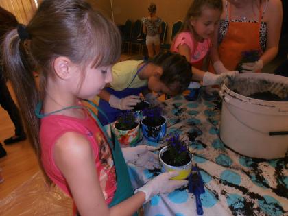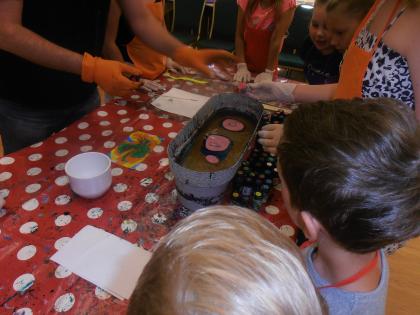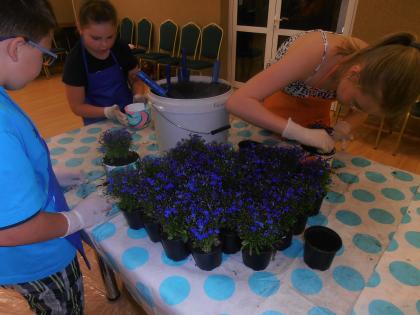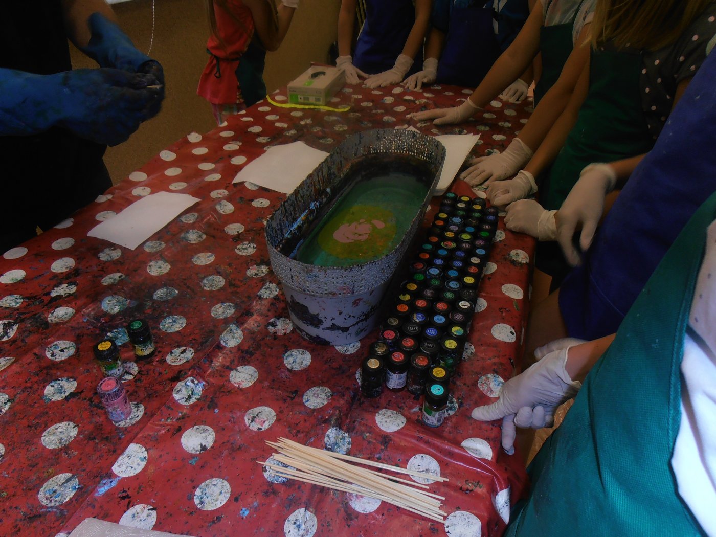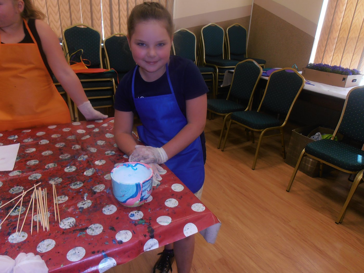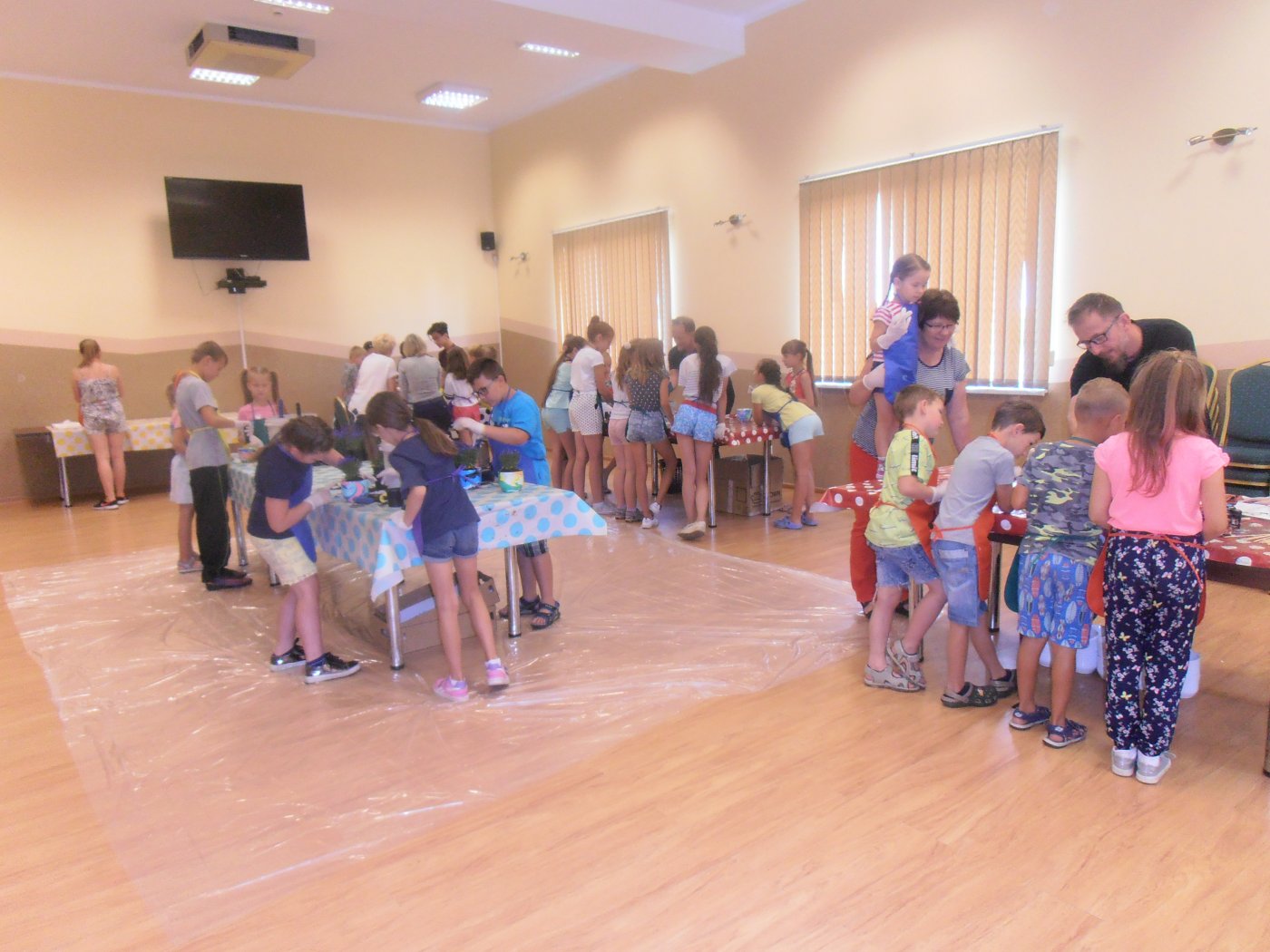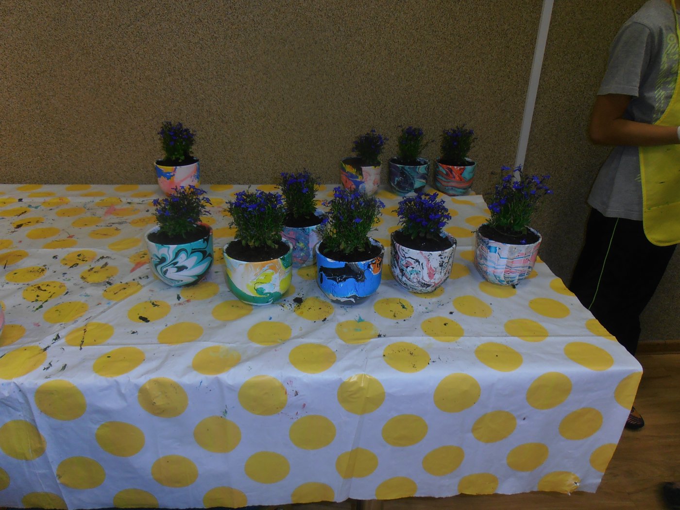 19 lipca ponad 30 osób wzięło udział w zajęciach plastycznych zorganizowanych przez GBP w świetlicy w Pawonkowie. Uczestnicy warsztatów poznali metodę malowania na wodzie i przenoszenia wyjątkowych wzorów i kształtów na przedmioty. Taka technika ozdabiania wywodzi się ze starożytnej sztuki ebru. Każda osoba wybierała kolory farb i samodzielnie tworzyła niezwykłe wzory na wodzie, którymi już przy pomocy instruktorów ozdabiała doniczki. Następnie sadzono w nich kwiatki. Powstało wiele wyjątkowych i barwnych prac, którymi wszyscy uczestnicy zajęć udekorowali swoje domy.