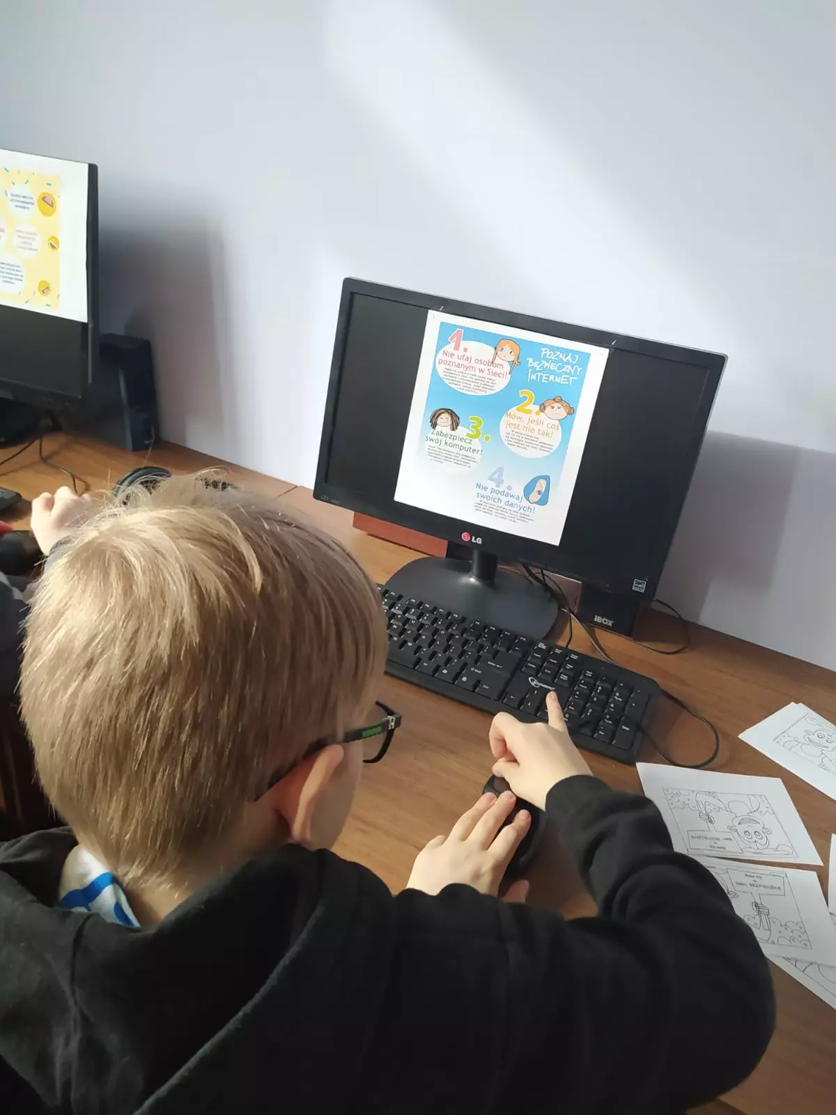 Uczniowie obejrzeli filmik "Owce w sieci" i wysłuchali jakich zasad przestrzegać, by bezpiecznie korzystać z Internetu.