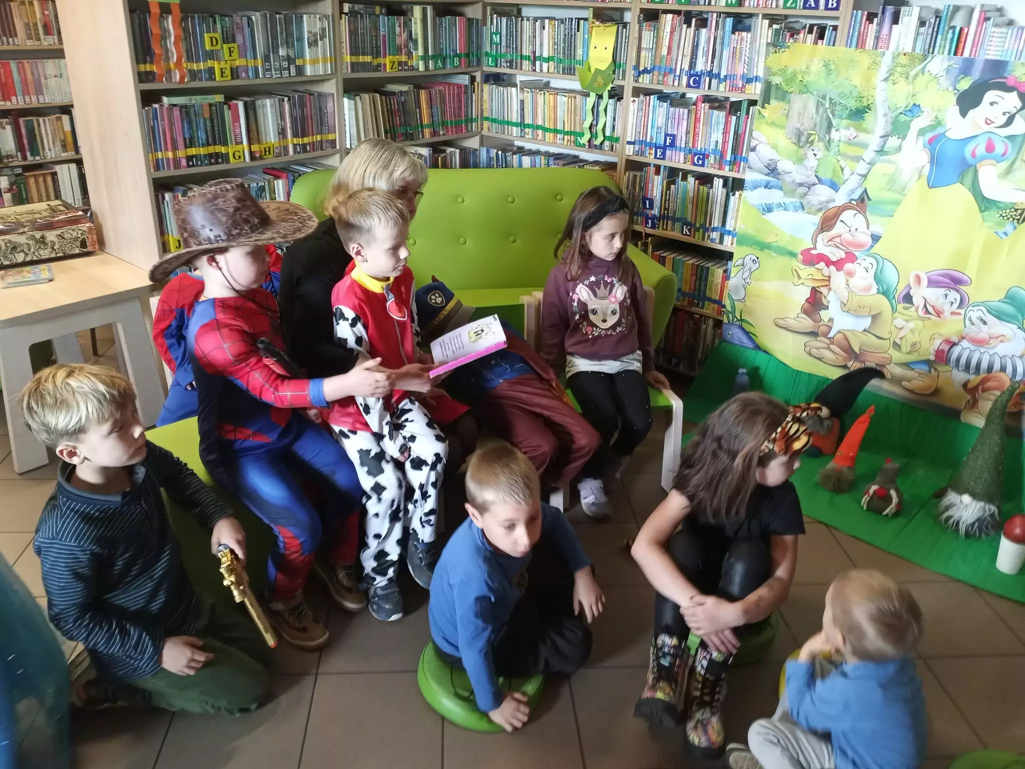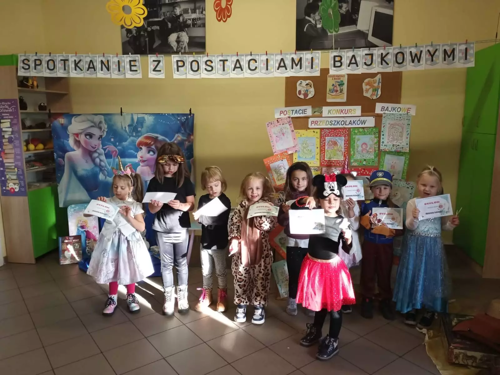 Następnie rozpoznawały baśnie po przeczytanym fragmencie i rekwizytach oraz układały bajkowe puzzle. Podczas spotkania przedszkolaki zostały nagrodzone za wcześniej wykonane prace rysunkowe ,a słodki poczęstunek wśród postaci bajkowych także smakował wyjątkowo. Na zakończenie każdy otrzymał pamiątkowy dyplomik znawcy bajek oraz drobny upominek.