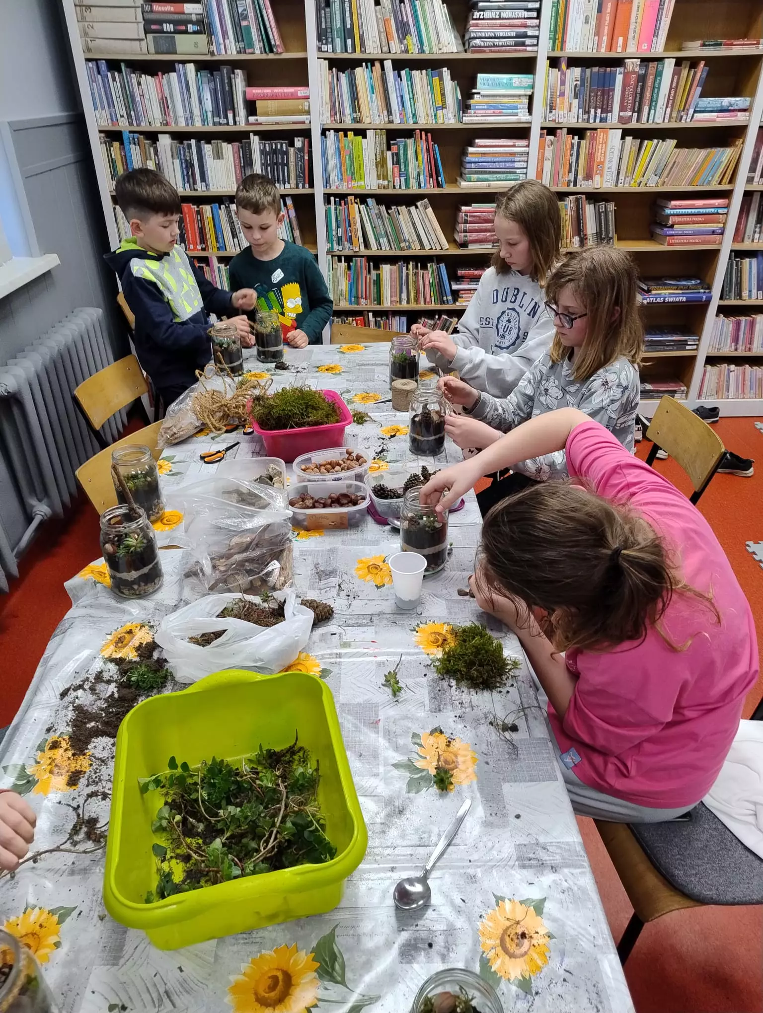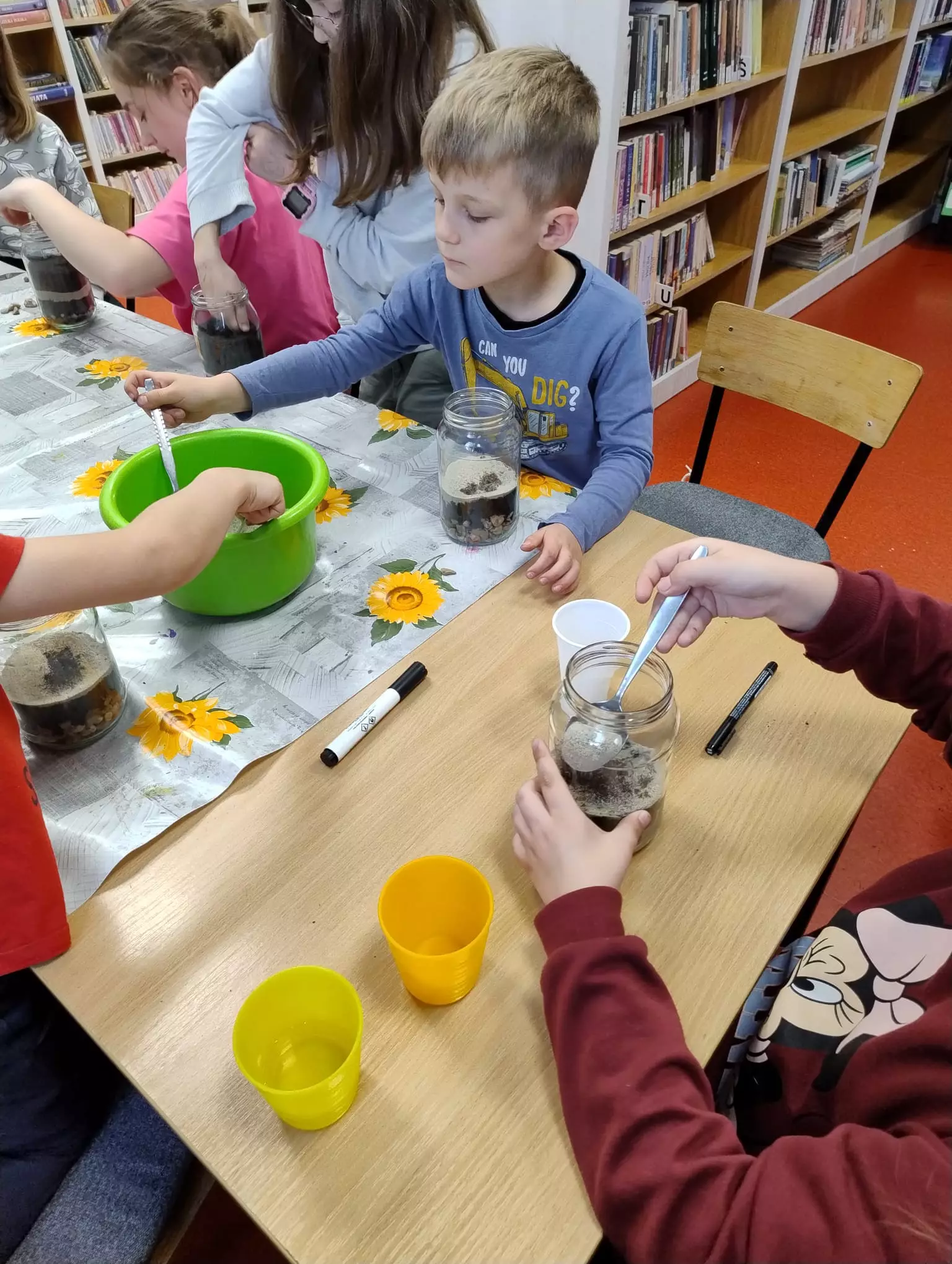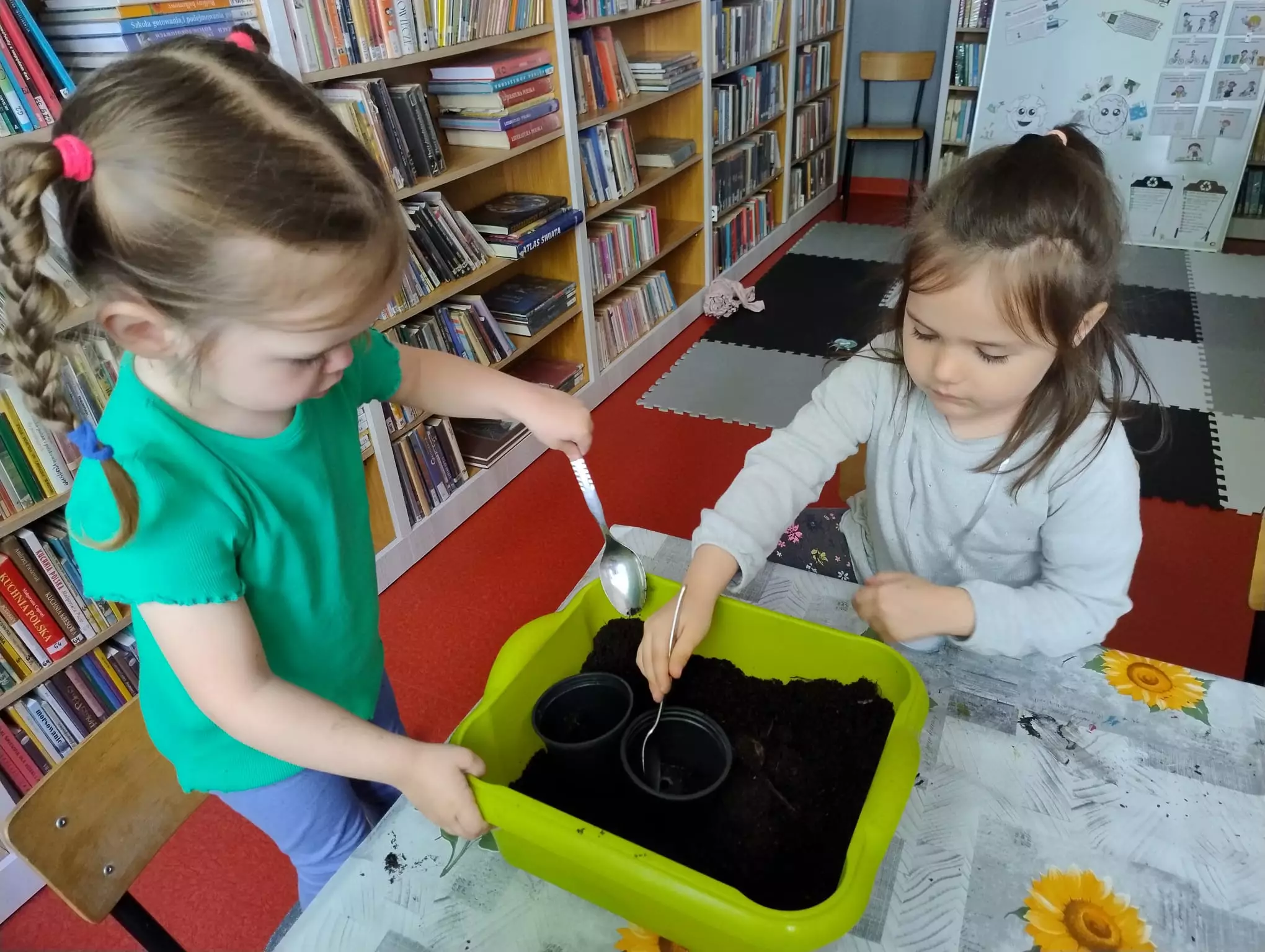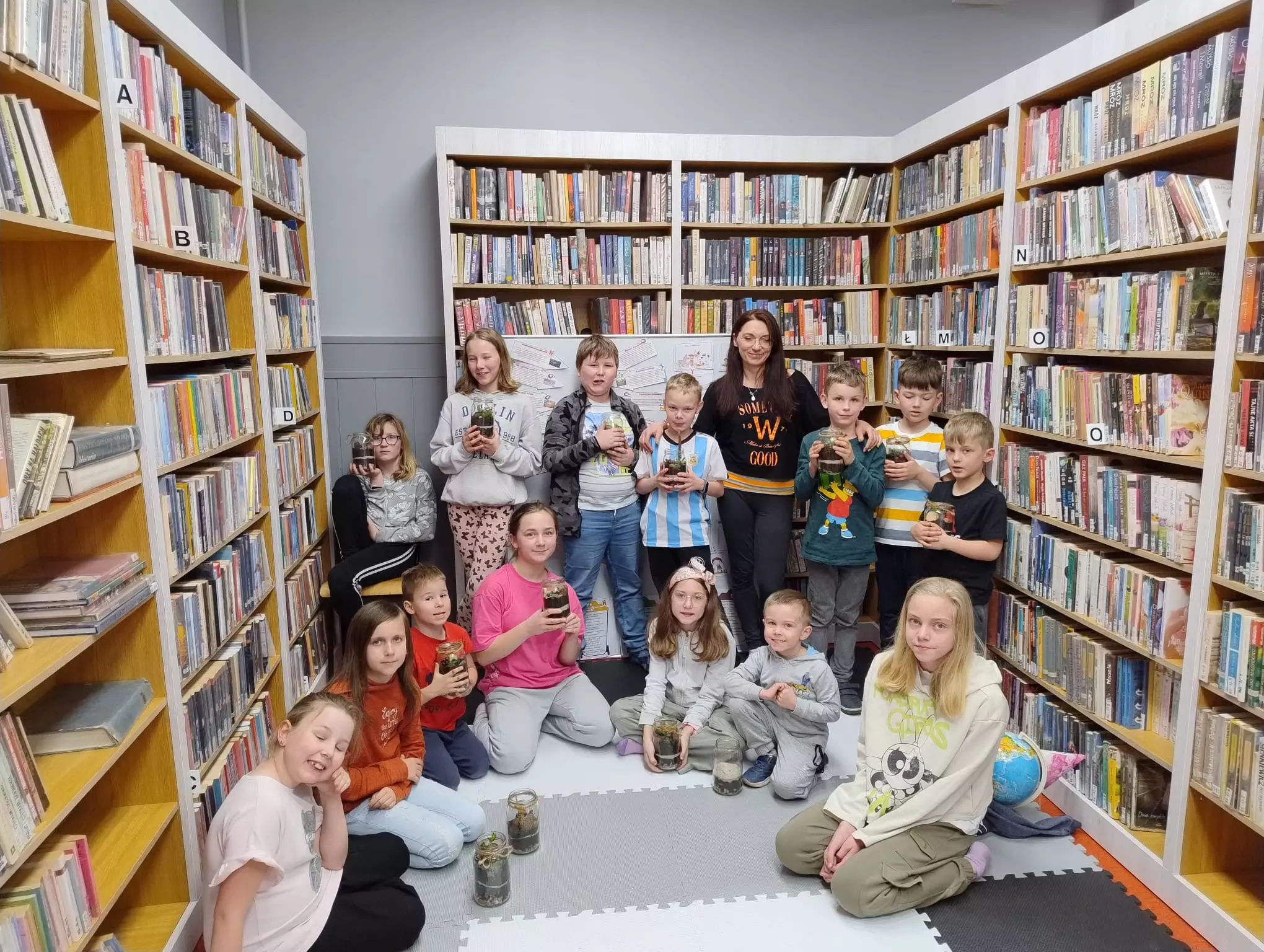 Tematem piątkowych zajęć w bibliotece w Łagiewnikach Małych był Międzynarodowy Dzień Ziemi. Święto to obchodzone jest 22 kwietnia i ma na celu promowanie proekologicznych postaw. Z tej okazji bibliotekę odwiedziły również przedszkolaki. Podczas zajęć dzieci wysłuchały wiersza pt "Nowa moda" Małgorzaty Strzałkowskiej, który to właśnie jedną z takich postaw przedstawia. Rozmawialiśmy o negatywnych skutkach wpływu człowieka na środowisko, o tym co nam daje Ziemia, czyli o tzw. usługach ekosystemowych oraz jak możemy o nią dbać. Dzieci poprzez zabawę przypomniały sobie segregację śmieci, siały nasiona i sadziły roślinki robiąc swój "las w szkle".