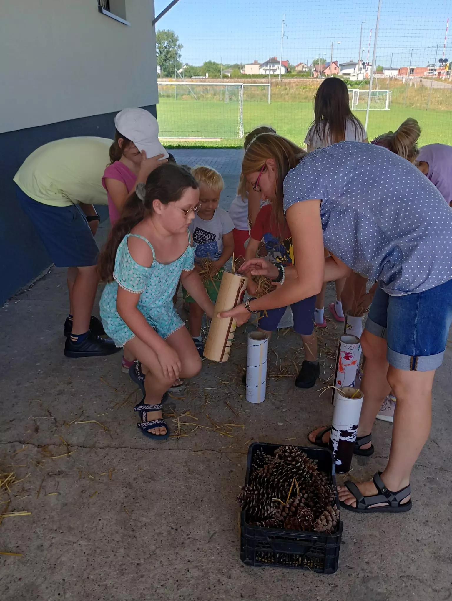 Na zakończenie zajęć wszystkie dzieci zamieniły się w prawdziwych artystów i majsterkowiczów, tworząc własne domki dla owadów. Te wyjątkowe konstrukcje z pewnością staną się schronieniem dla wielu małych mieszkańców naszych ogrodów!