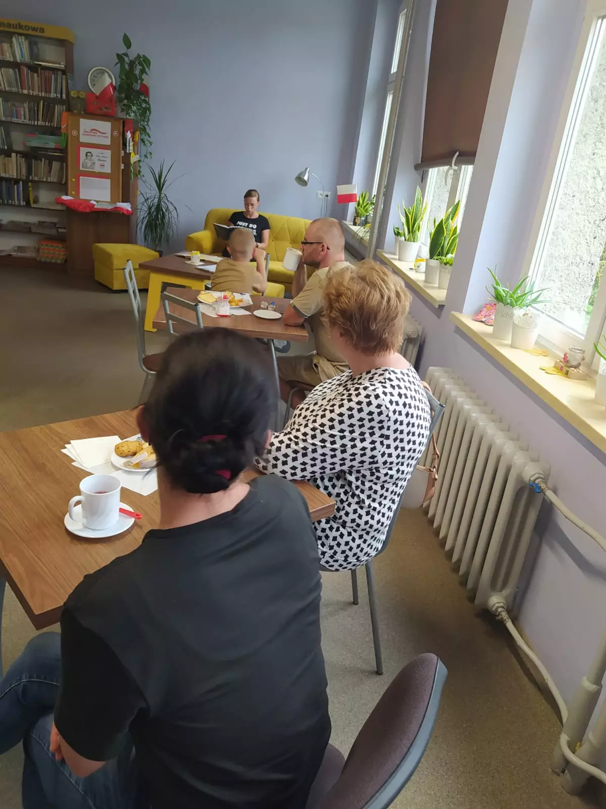 Ogólnopolska akcja Narodowe Czytanie 2024. Uczestnicy siedzą przy stolikach i słuchaja fragmentów dramatu Kordian Juliusza Słowackiego.Ogólnopolska akcja Narodowe Czytanie 2024. Uczestnicy siedzą przy stolikach i słuchaja fragmentów dramatu Kordian Juliusza SłowackiegoOgólnopolska akcja Narodowe Czytanie 2024. Uczestnicy siedzą przy stolikach i słuchaja fragmentów dramatu Kordian Juliusza SłowackiegoGazetka biblioteczna.Maskotka wykonana na szydełku.Kolaż zdjęć z zajęć.Uczestniczki zajęć szydełkują maskotki.Uczestniczki zajęć szydełkują maskotki.