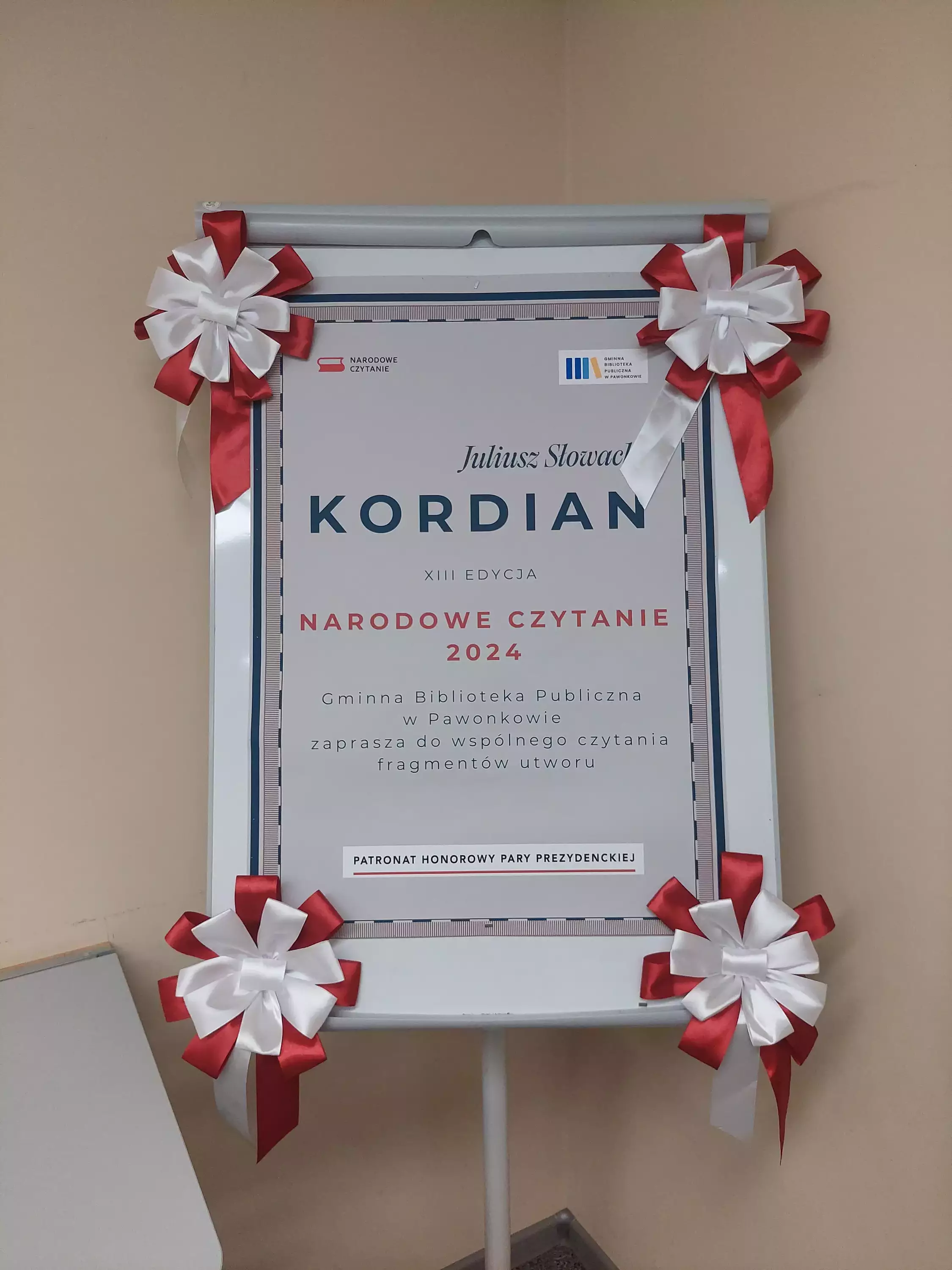 W poniedziałek, 9 września, odbyła się XIII edycja Narodowego Czytania w bibliotece w Pawonkowie. Podczas spotkania sięgnęliśmy po jedno z najważniejszych dzieł polskiej literatury – dramat Juliusza Słowackiego "Kordian". Wydarzenie swoją obecnością zaszczycili seniorzy z Klubu Seniora+ w Pawonkowie, którzy aktywnie włączyli się w odczytywanie utworu. Serdecznie dziękujemy im za niezastąpioną obecność.