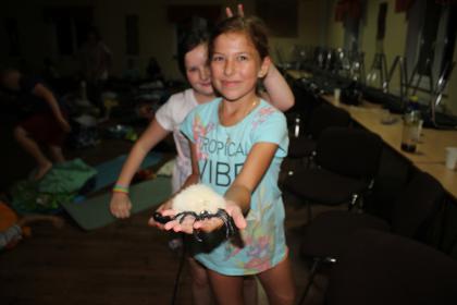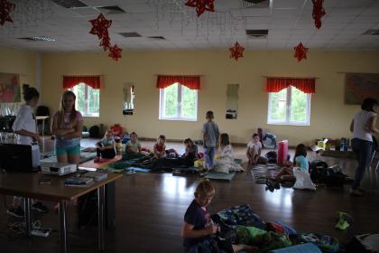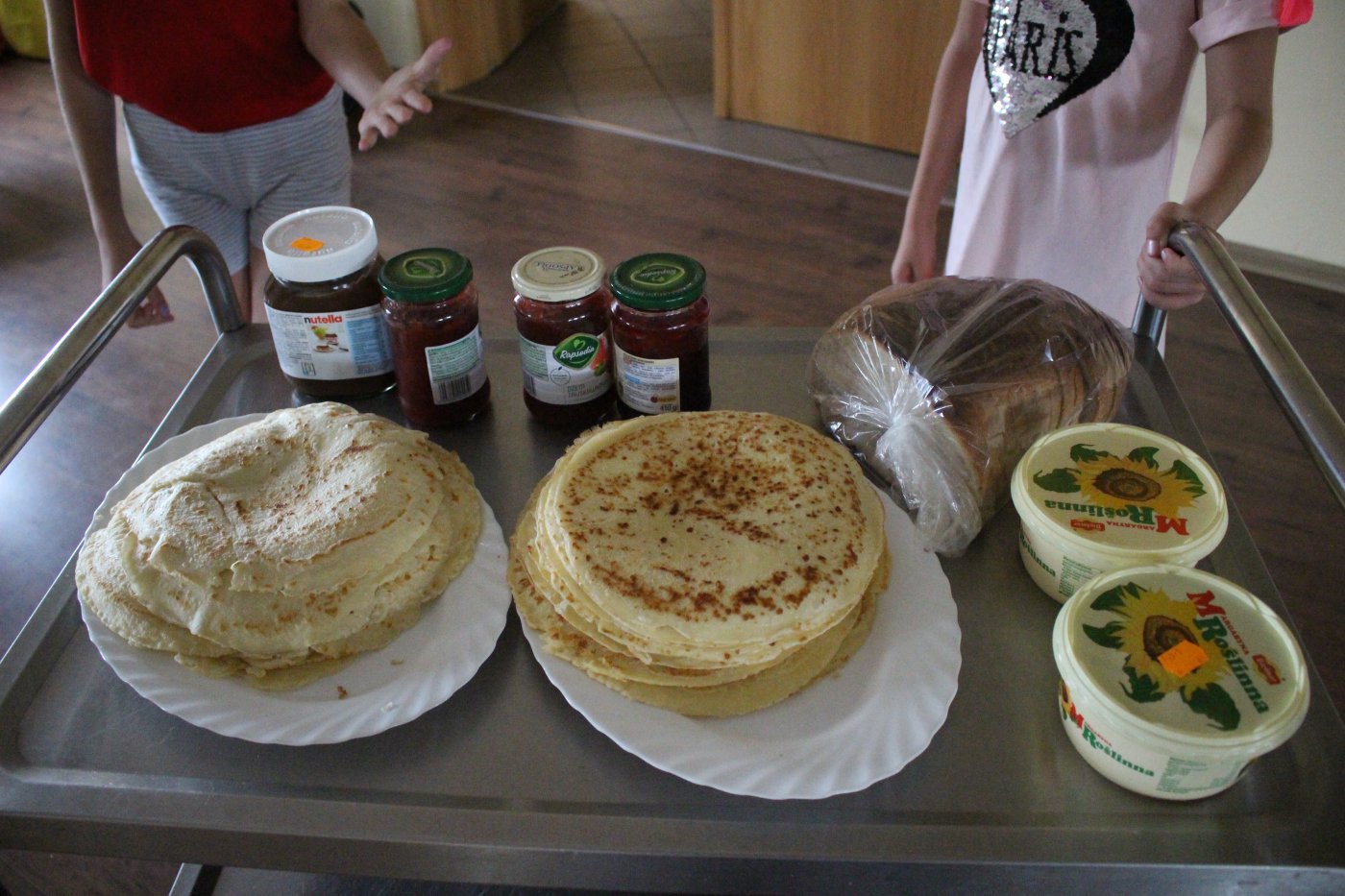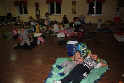 Następnie przeszliśmy do sali, w której obejrzeliśmy pierwszy film. Po nim przyszedł czas na wieczorną toaletę i położenie się do swoich śpiworów. Kolejne filmy oglądaliśmy z zainteresowaniem, a kto był bardziej zmęczony, to mógł zasnąć. W przerwach między filmami były tańce i karaoke. Nie zabrakło czegoś do picia i chrupania. Rano na śniadanie zjedliśmy naleśniki i kanapki i rozeszliśmy się do domów.
