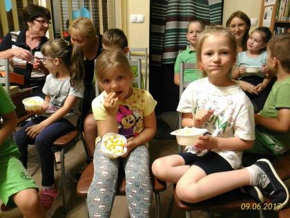 9 czerwca sprawdziły to dzieci z przedszkola w Kośmidrach podczas Zielonej Nocy. Obejrzały także kilka króciutkich filmików wyświetlonych diaskopem. I jak na seans filmowy przystało były "niby" bilety i coś do pochrupania.