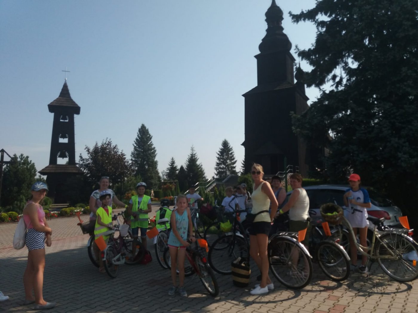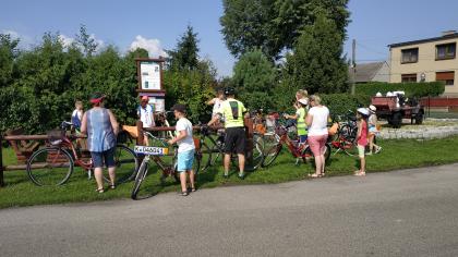 Ostatnim wakacyjnym wydarzeniem organizowanym przez GBP był rajd rowerowy. W piękny gorący dzień 29 sierpnia grupa czytelników wraz z bibliotekarzami wyruszyła spod Gminnej Biblioteki Publicznej w Pawonkowie i udała się w stronę Skrzydłowic. Następnie w Gwoździanach dołączyło jeszcze kilka osób i razem zwiedzano zabytkowy kościół i jego otoczenie. Pani Jadwiga Kukowka opowiedziała uczestnikom rajdu interesującą historię powstania parafii i kościółka. Kolejną miejscowością na trasie rajdu były Łagiewniki Wielkie. Tam była okazja, dzięki uprzejmości Pani Róży, odwiedzenia Regionalnej Izby Pamięci i Tradycji, w której wszystkich zainteresowały zgromadzone przedmioty i dokumenty z minionych lat. Była to też ciekawa lekcja historii.