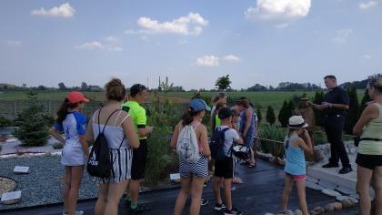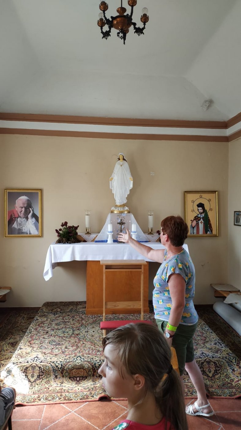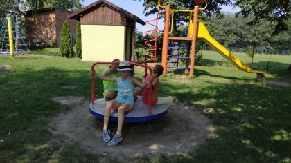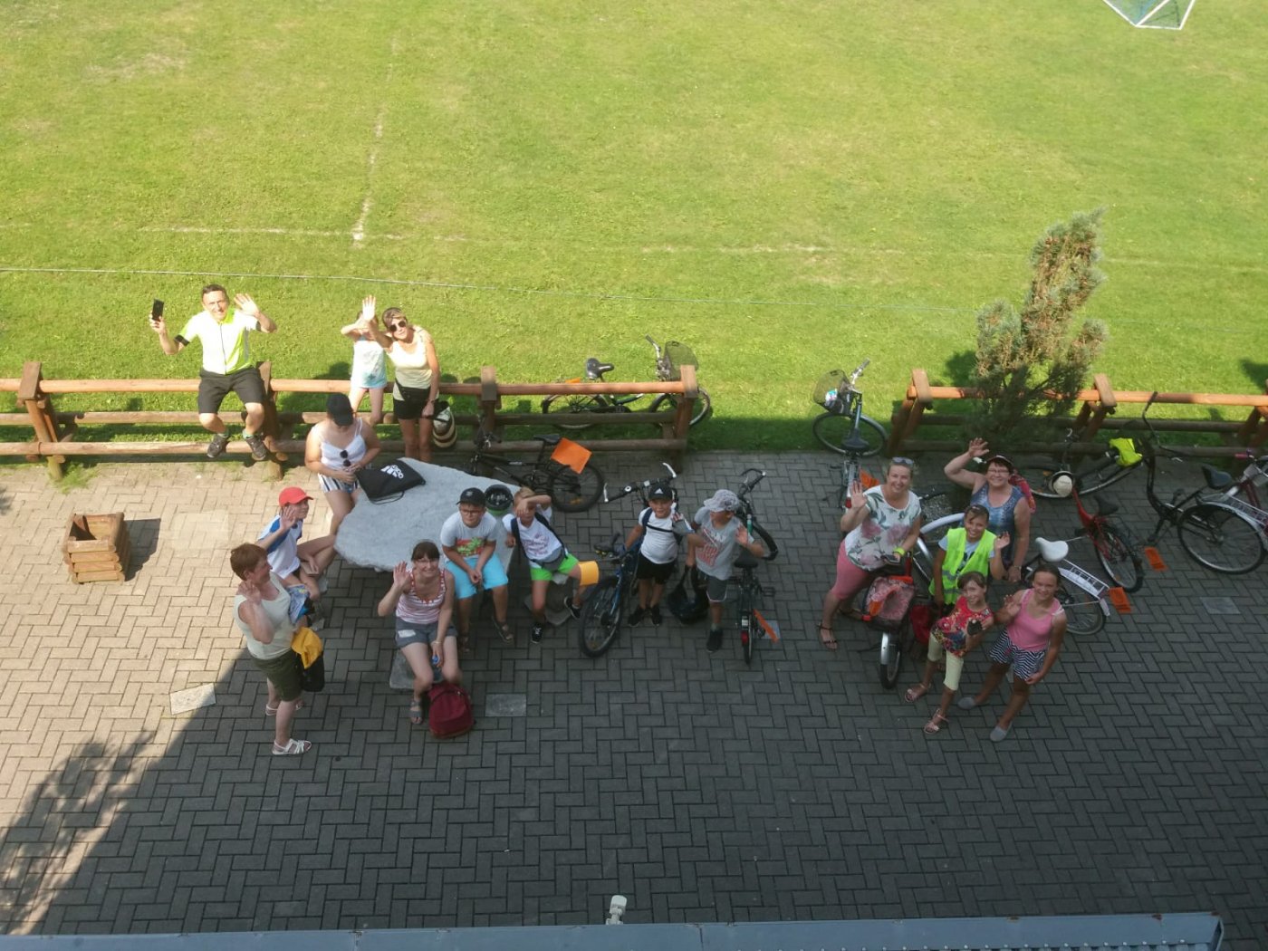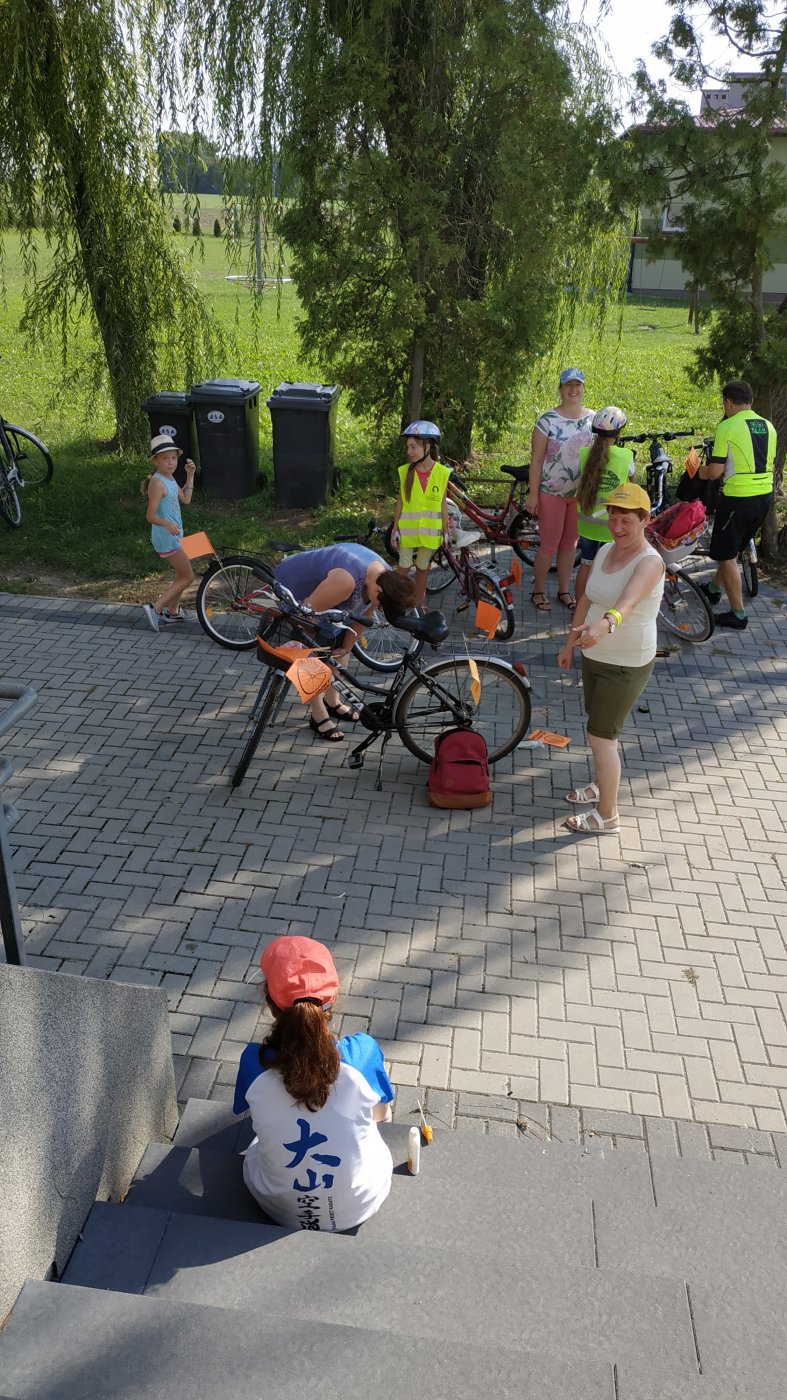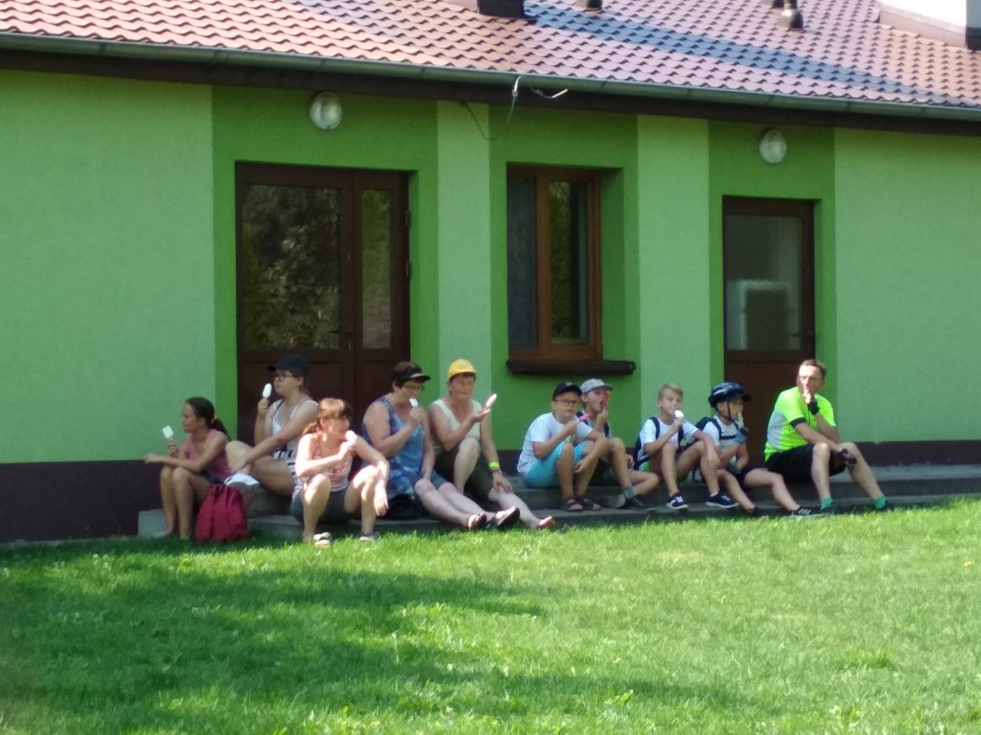 W Łagiewnikach szczególnie w ten upalny dzień wszystkim smakowały pyszne lody. Następnie przez Draliny rowerzyści dojechali do Lisowic, gdzie czekał przygotowany już przez Panią Jadwigę posiłek, po którym udano się do biblioteki. Pani Jola wyświetliła prezentację o Lisowicach i miejscach, które warto tam zobaczyć. Tak więc dobrze poinformowani uczestnicy udali się do nowego pięknego ogrodu św. Jana Nepomucena. Proboszcz ks. Rafał Wyleżoł opowiedział o patronie parafii i wyjątkowym przesłaniu ogrodu: "Będziesz miłował. Nie hejtował!". Zamieszczone w różnych miejscach tabliczki z cytatami i sentencjami na temat dobrego i odpowiedzialnego używania mowy mają być dla zwiedzających bodźcem do zastanowienia się nad sensem i wartością wypowiadanych słów. Kolejnym punktem w Lisowicach była kapliczka, której historię przedstawiła Pani Jola Piosek. Opowiedziała też kilka anegdotek z dzieciństwa, związanych z uczęszczaniem do kapliczki, które wszystkich rozbawiły. Tak w dobrych humorach, mimo lejącego się z nieba żaru dojechano do Kośmider, dokładnie do agroturystyki państwa Bednarków. Tam w otoczeniu pięknych drzew i krzewów wszyscy mogli się już zrelaksować. Dzieciom najbardziej podobała się tyrolka i każdy kto chciał z niej korzystał. Był też czas na słodki podwieczorek. Następnie Pani Barbara Bednarek-Mazur przeprowadziła lekcję przyrodniczą o pszczołach i innych owadach latających, występujących w naszym otoczeniu. Były to bardzo ciekawe informacje, których wszyscy wysłuchali z uwagą. Można było z bliska zobaczyć przygotowane przez Panią Basię pomoce: pszczołę, ćmę azjatycką, gniazdo szerszeni, spróbować pyłku pszczelego. Dużo frajdy i śmiechu sprawiła zabawa w zgadywankę: jakie to zwierzę. Za lekcję i możliwość zatrzymania się w tym pięknym miejscu wszyscy serdecznie podziękowali. Z tego punktu część osób udała się już do swoich domów, a pozostali pojechali do Pawonkowa i Gwoździan. Tak zakończono trzeci rajd Odjazdowy Bibliotekarz, był to naprawdę bardzo ekscytujący dzień, spędzony w miłej i serdecznej atmosferze. Dziękujemy wszystkim osobom, które nas przyjęły i oprowadziły po interesujących miejscach naszej gminy. Dziękujemy również uczestnikom, szczególnie tym najmłodszym za wytrwałość. Brawa dla wszystkich!!!!!!!