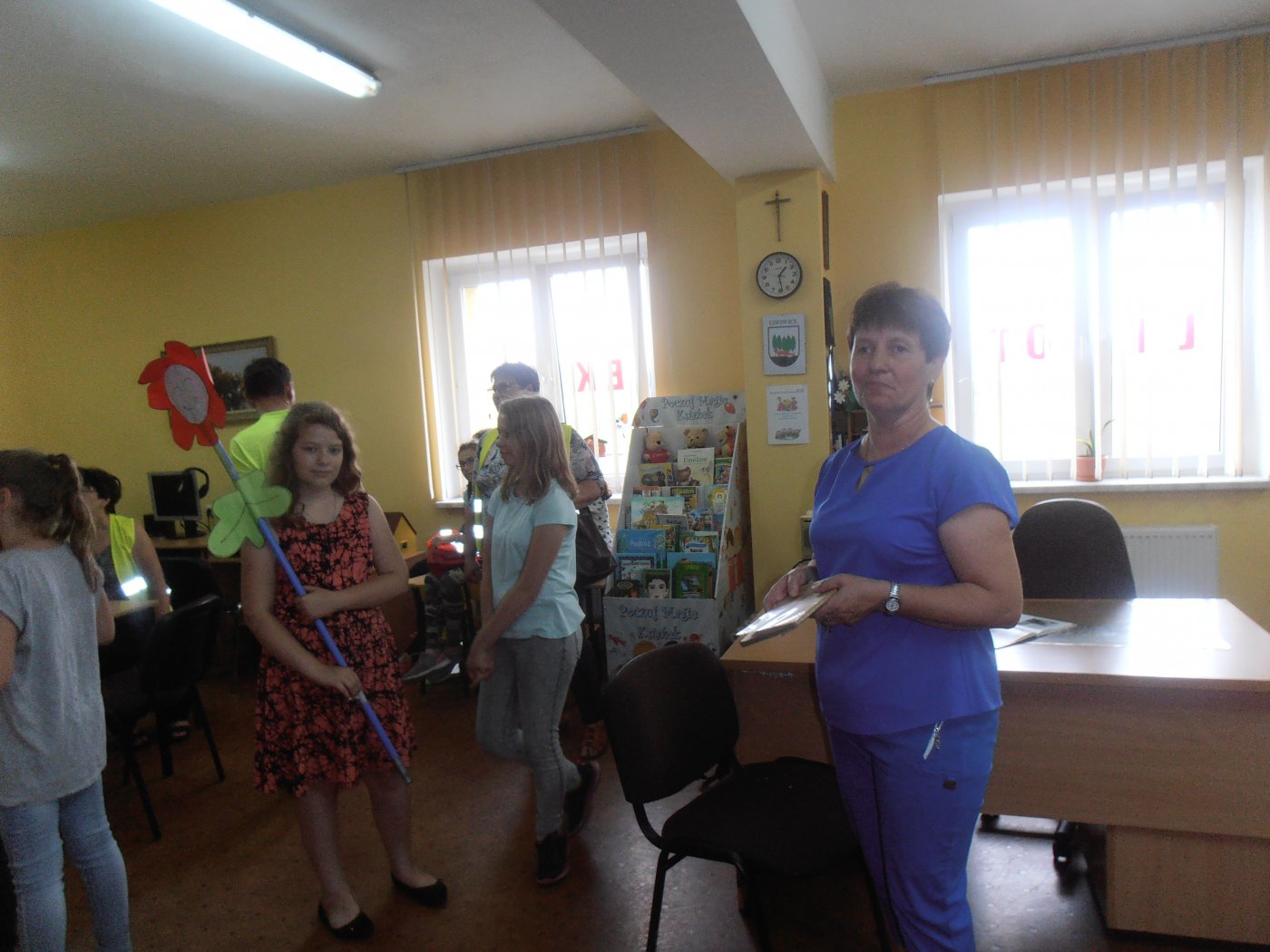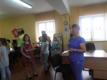 Następnie ruszyliśmy w dalszą drogę w kierunku Lubecka. Po drodze oglądaliśmy stare, zabytkowe pałace i dworki, m.in. w Łagiewnikach Wielkich i Dralinach. W sanktuarium Matki Bożej Lubeckiej zobaczyliśmy w prezbiterium wyjątkowe, XIV wieczne freski. Mieliśmy także szczęście i spotkaliśmy pana kościelnego, który opowiedział nam o historii kościoła. Będąc już w tym miejscu wstąpiliśmy również do Gminnej Biblioteki Publicznej w Lubecku, gdzie dowiedzieliśmy się, co dzieje się w bibliotekach sąsiedniej gminy (Kochanowice). Wracając w kierunku Lisowic zatrzymaliśmy się przy domu śp. Franciszki Ciemiengi, charyzmatyczki i mistyczki, żyjącej w latach 1867-1935 w Kanusie (przysiółku Lubecka). Po przyjeździe do Lisowic czekała na nas dłuższa przerwa, podczas której posililiśmy się hot-dogami oraz wzięliśmy udział w różnych zabawach ( Familiada, Koło fortuny, itp.). Ostatnim etapem rajdu był odcinek między Lisowicami a Pawonkowem, gdzie najwytrwalsi pożegnali się w lodziarni na rynku. Pogoda i uczestnicy dopisali, dzień należy więc zaliczyć do udanych. Cały wyjazd był niewątpliwie atrakcyjny i ciekawy.