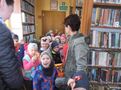 31 marca dzieci z Przedszkola w Pawonkowie grupa młodsza i starsza przybyły do bibliotek,i aby wysłuchać opowiadań "Mój przyjaciel Kemushi", "Groszki", "Kotka Milusia". Forma prezentacji historii poprzez teatrzyk kamishibai bardzo się dzieciom podobała, szczególnie kiedy mogły same aktywnie się do niej włączyć.