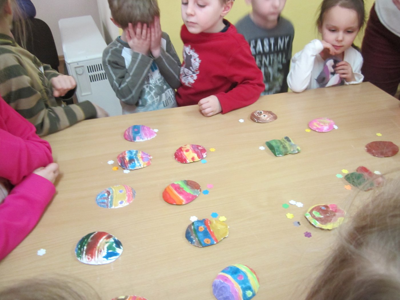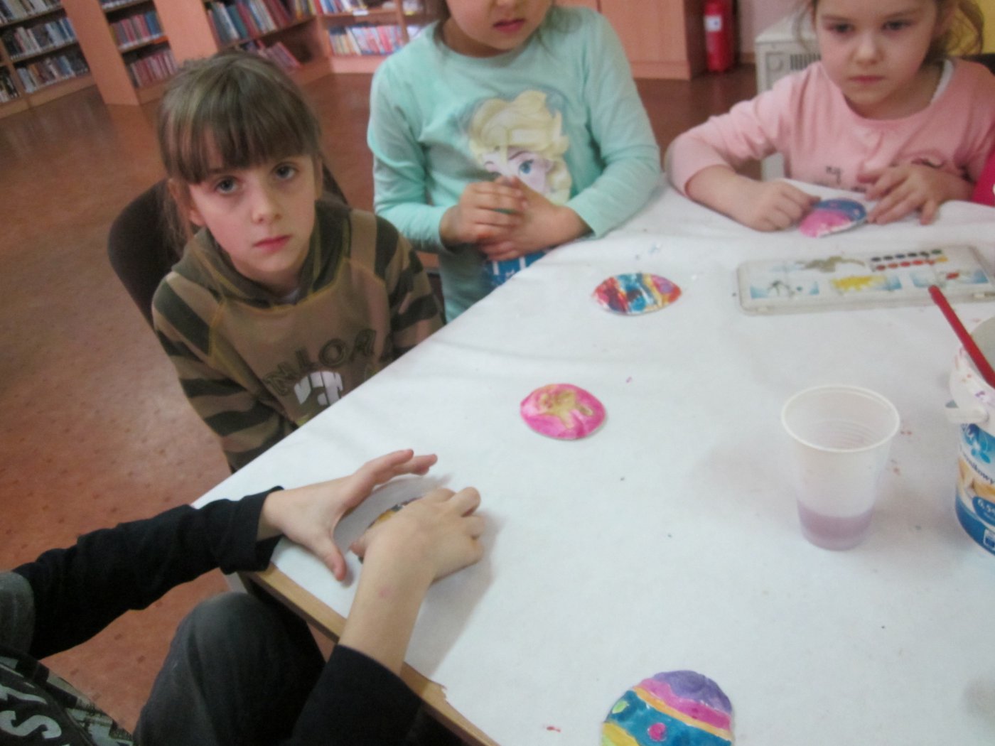 W okresie przedświątecznym młodsze dzieci z przedszkola zostały zaproszone na zajęcia plastyczne w bibliotece. Ozdabiano wtedy papierowe i gipsowe jajka, które równocześnie były pracami konkursowymi. Dzieci otrzymały nagrody za zajęcie pierwszych miejsc. Natomiast starsze dzieci podczas warsztatów w bibliotece poznały technikę robienia jajek z papierowej wikliny oraz ozdabianie kartek świątecznych metodą quillingu. Nie zabrakło też z obu stron świątecznych życzeń.