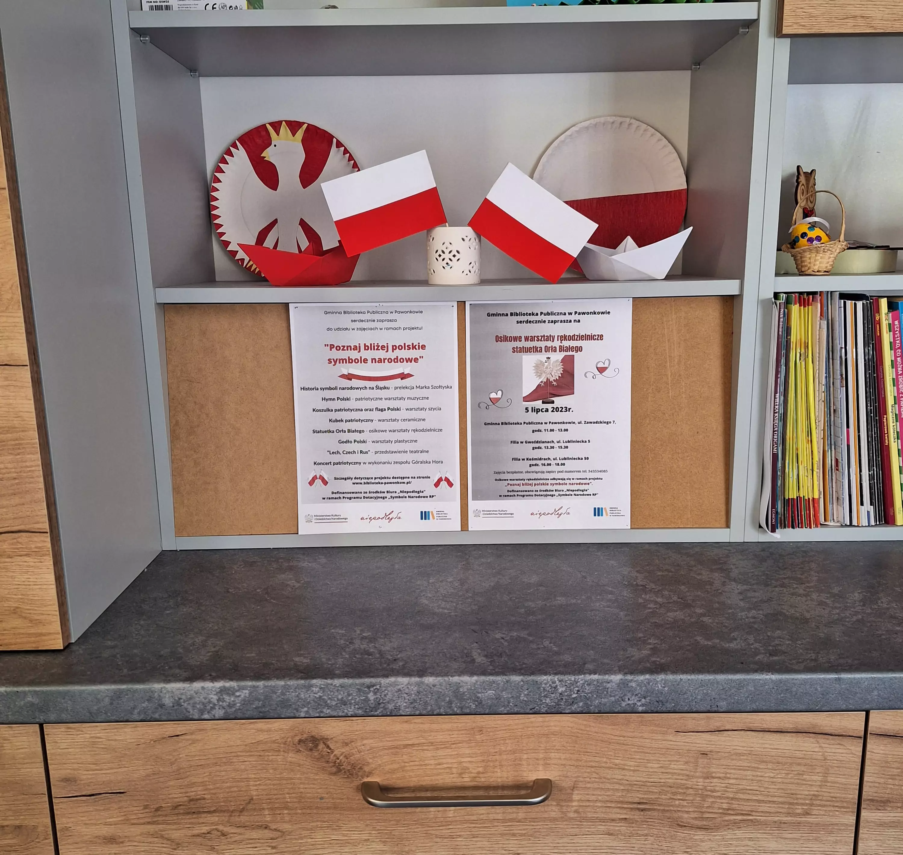 W ramach projektu „Poznaj bliżej polskie symbole narodowe" w bibliotekach w Pawonkowie, w Gwoździanach i Kośmidrach odbyły się osikowe warsztaty rękodzielnicze „Statuetka Orła Białego”.