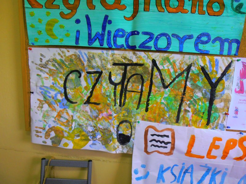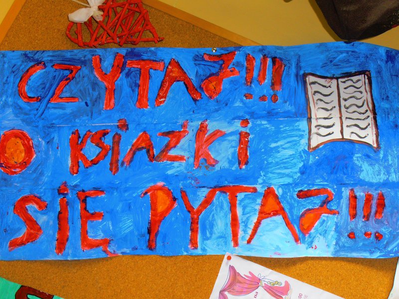 Plakaty promujące czytanie i książki zostały wystawione w bibliotece w Pawonkowie.