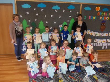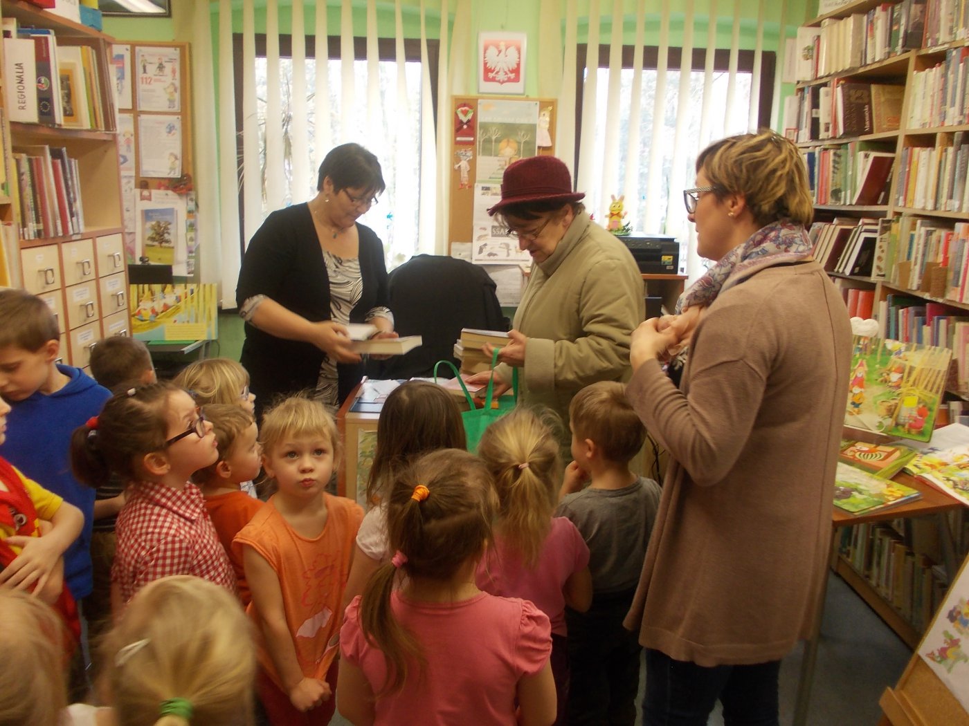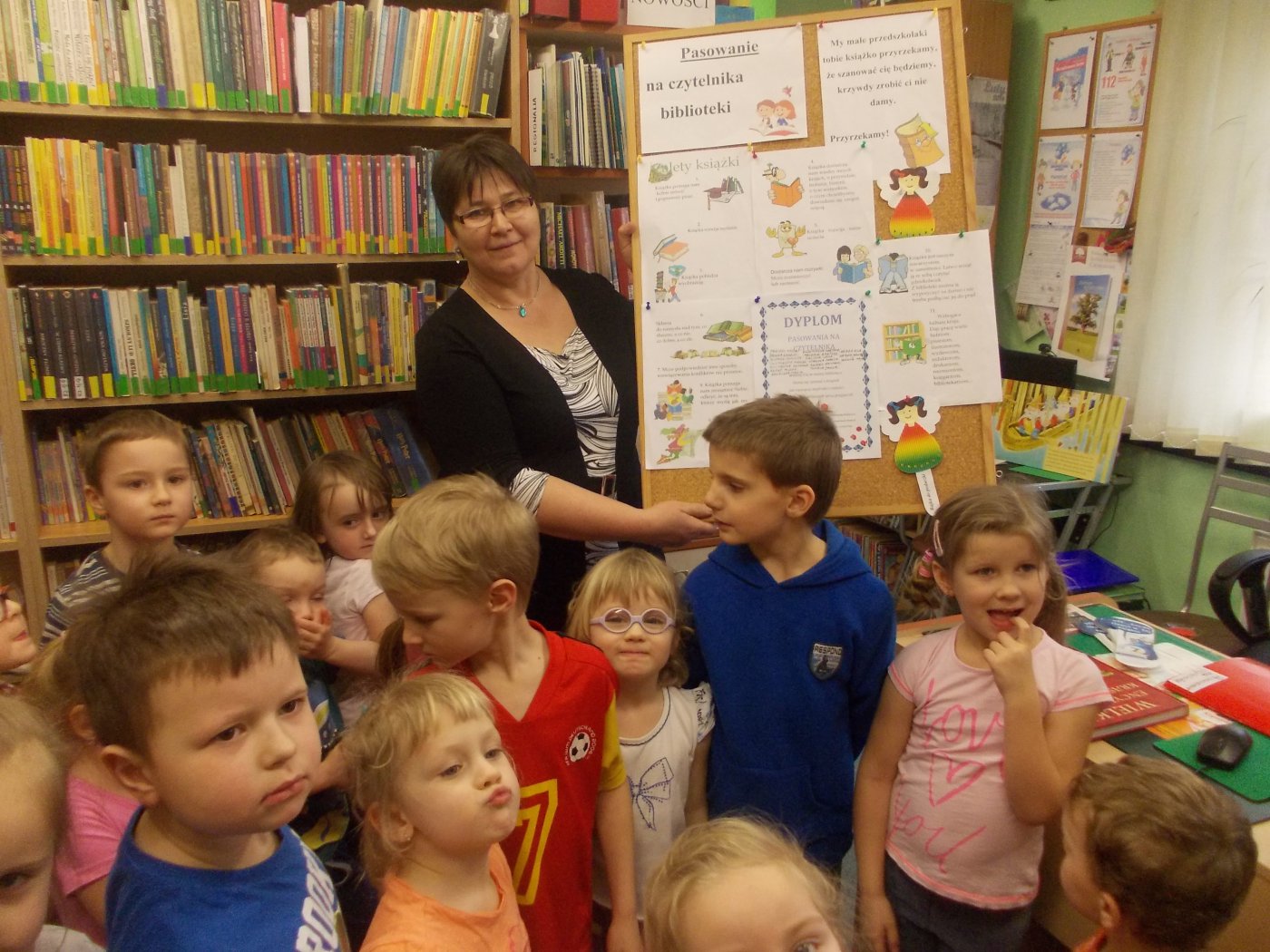 Podczas pasowania bibliotekę odwiedziła pani sołtys Skrzydłowic Janina Bonk i wyjaśniła dzieciom dlaczego warto czytać, pani Janina jest emerytowaną nauczycielką i naszą aktywną czytelniczką. Przedszkolakom wręczono pamiątkowe dyplomy, zakładki do książek i medale wykonane przez panie z przedszkola. Wszystkie maluchy chętnie odwiedzają bibliotekę oraz słuchają bajeczek czytanych co wtorek w przedszkolu przez bibliotekarkę.
