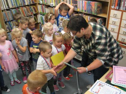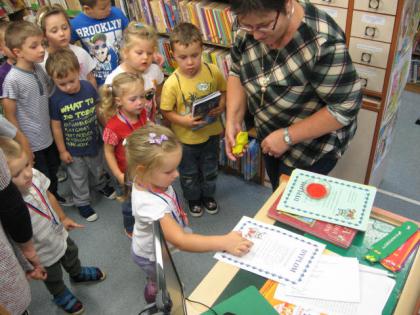 21 września w bibliotece w Łagiewnikach Małych odbyło się pasowanie na czytelnika. Pani bibliotekarka zapoznała dzieci z zasadami wypożyczania książek z biblioteki oraz omówiła korzyści płynące z czytania. Przedszkolacy złożone przysięgi przypieczętowali odciskami paluszków, potem dostali dyplomy i zakładki - sowy i medale czytelnika przygotowane przez panią Anetę Kandora. Do końca roku trwa konkurs na najaktywniejszego czytelnika.