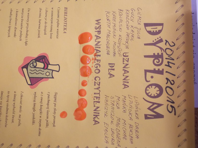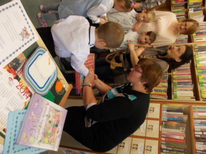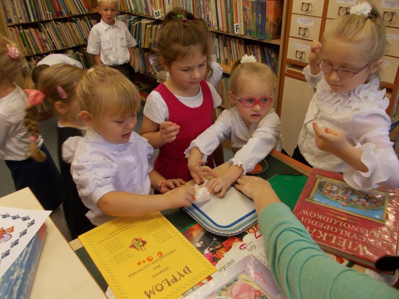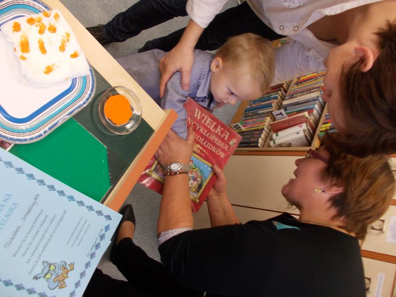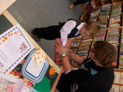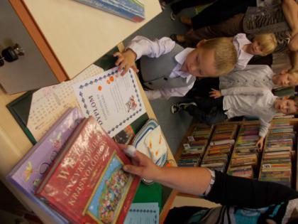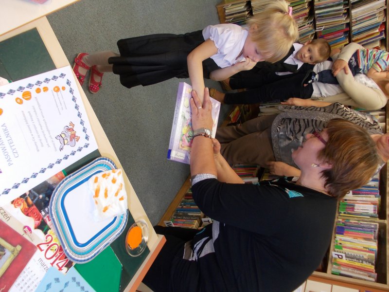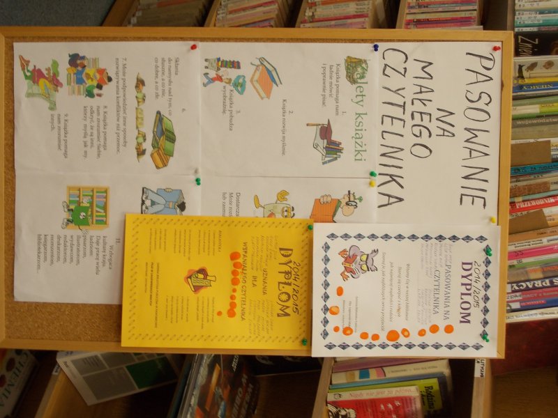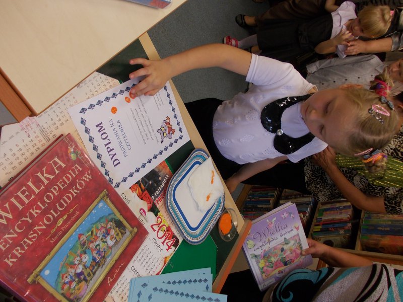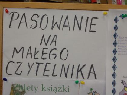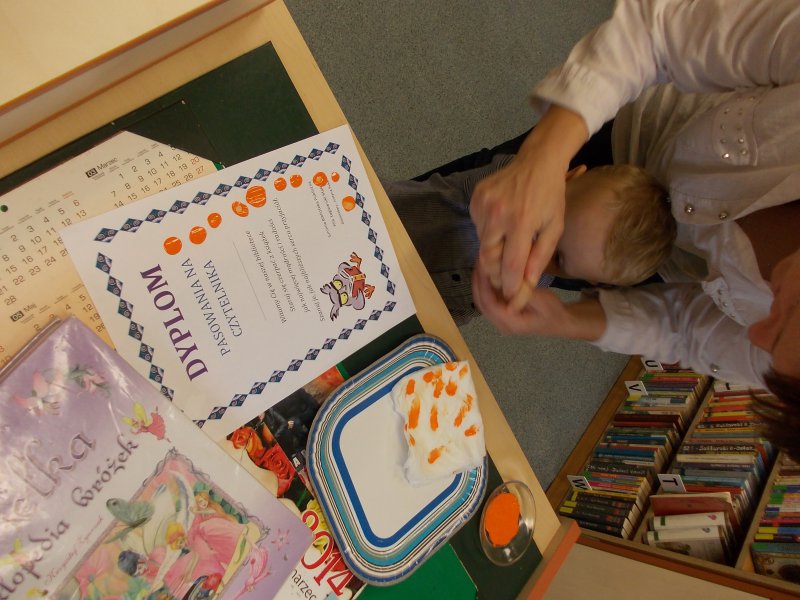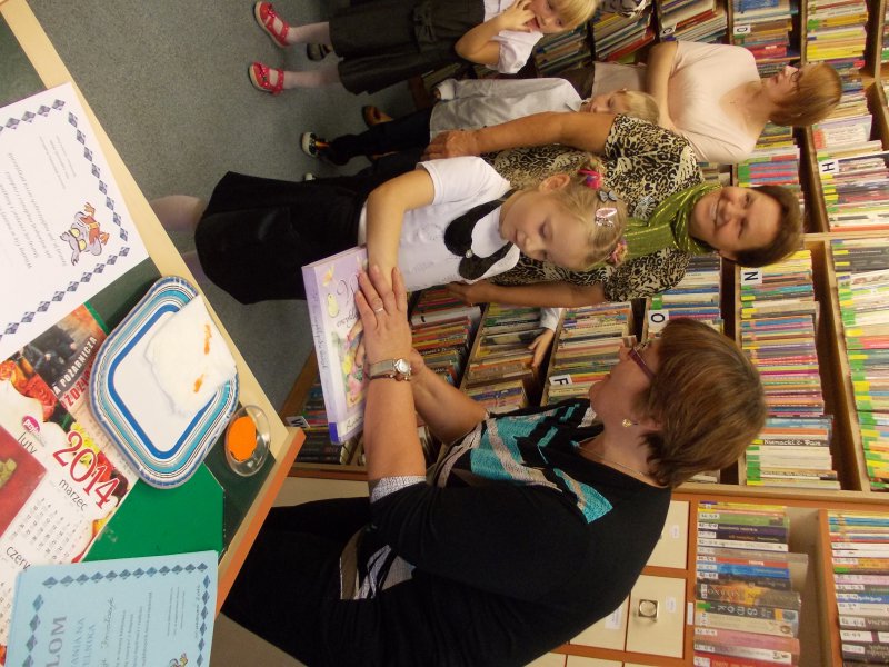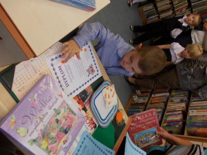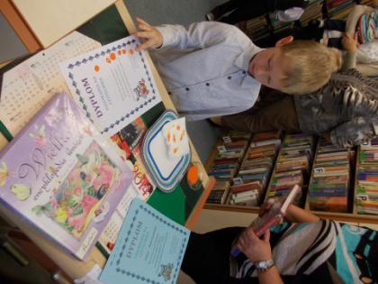 Dzieci, które w tym roku rozpoczęły edukację przedszkolną zostały pasowane na Małego Czytelnika książką. Złożyły na pamiatkę odciski palca jako podpisy na ozdobnej kartce i otrzymały dyplomy. Natomiast przedszkolaki będące już czytelnikami odnowiły przysięgę oraz złożyli podpis - odcisk palca. Również otrzymali dyplomy, tym razem już Wspaniałego Czytelnika. W tym dniu zachęceni rodzice zapisywali swoje małe pociechy do biblioteki i w rezultacie przybyło 7 nowych czytelników.