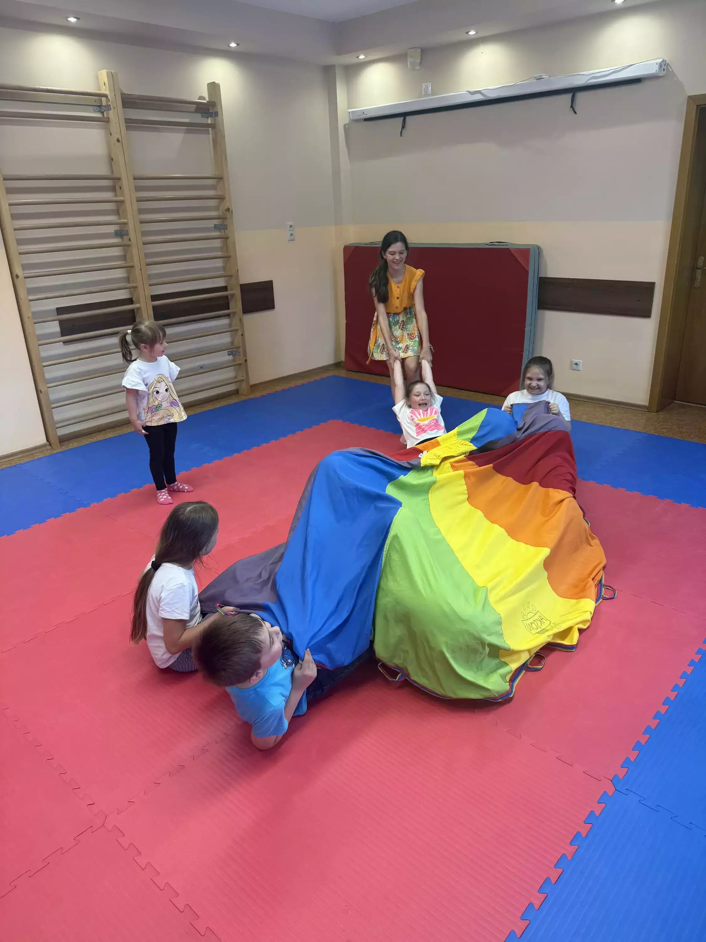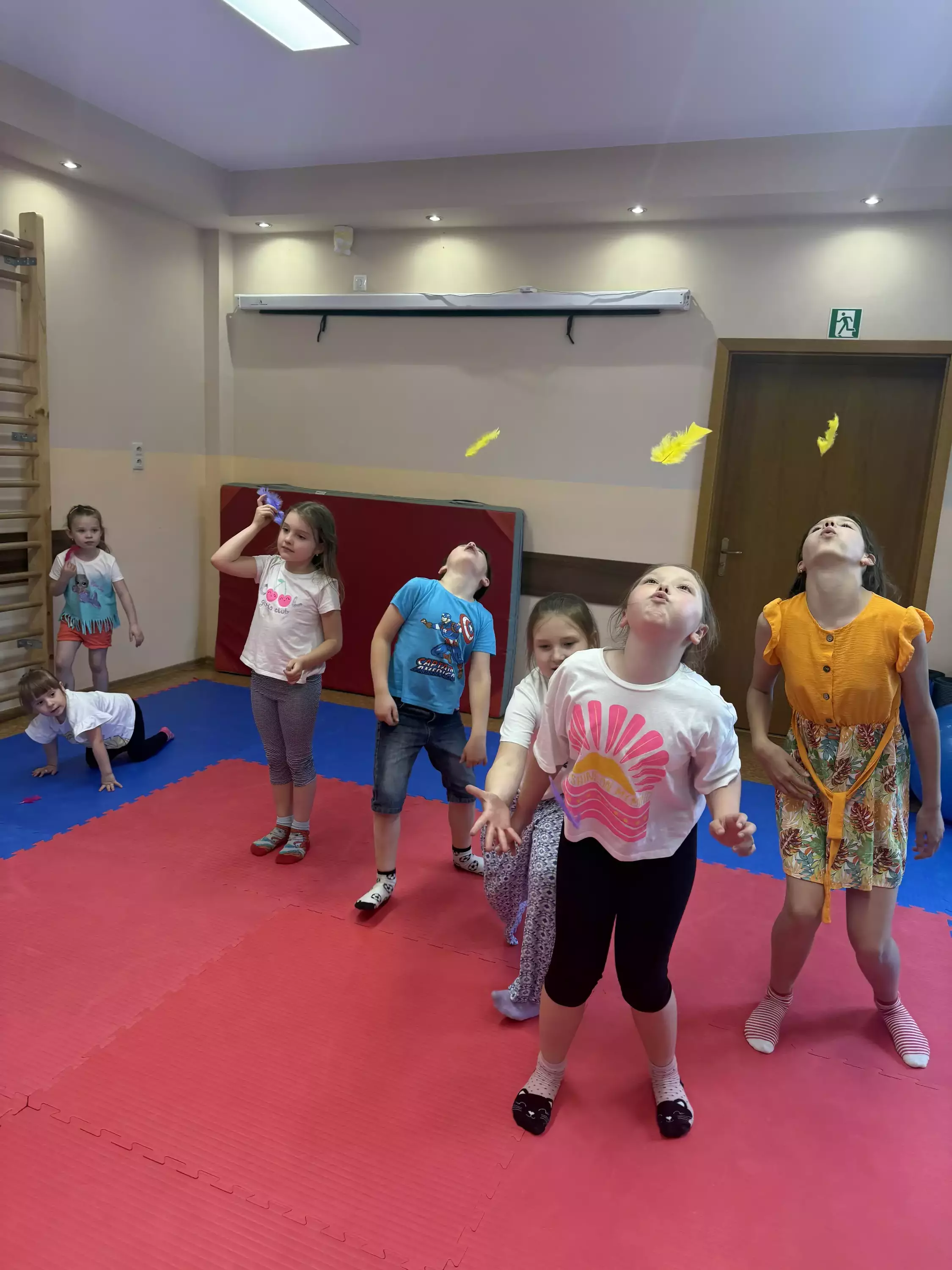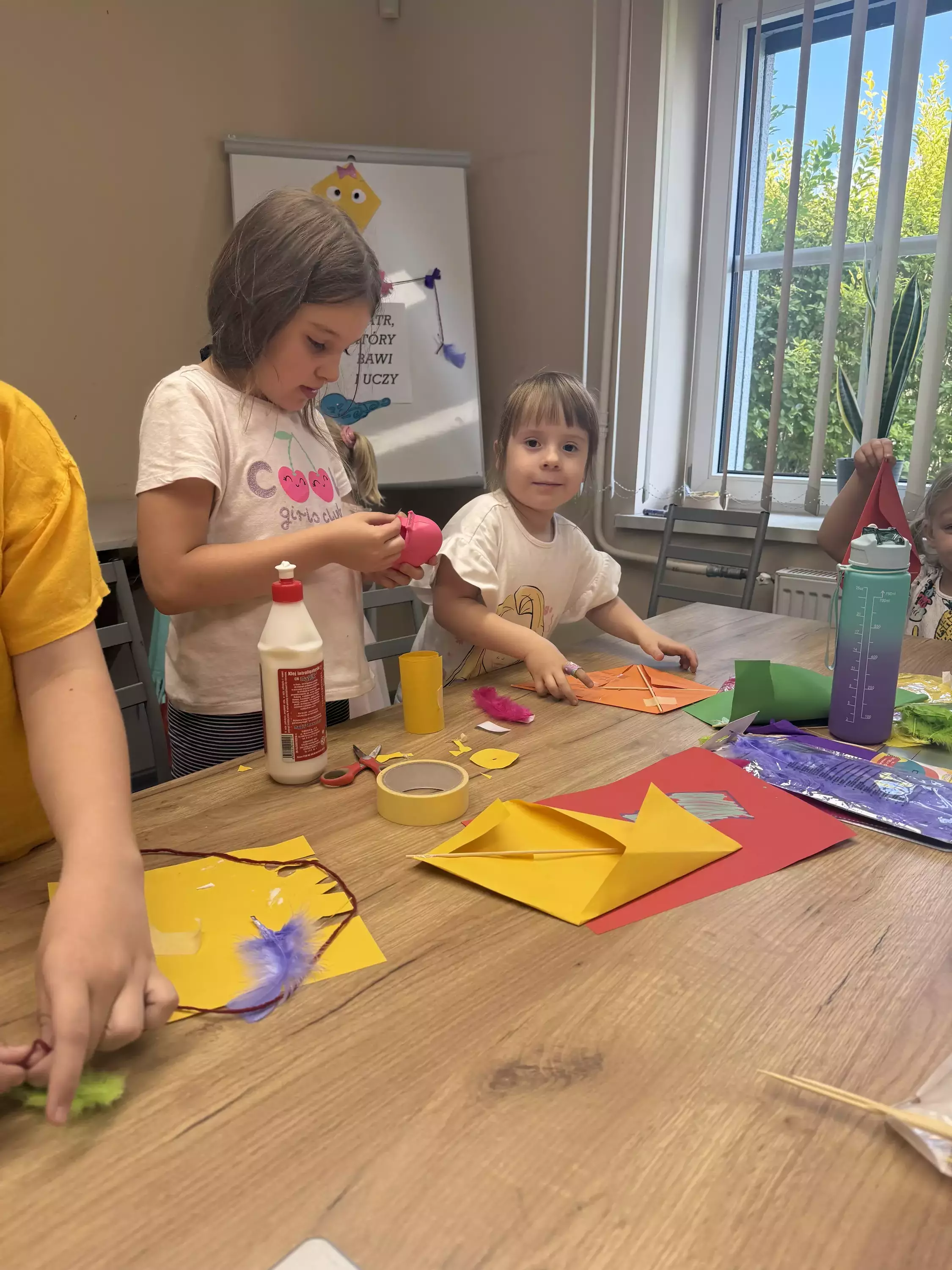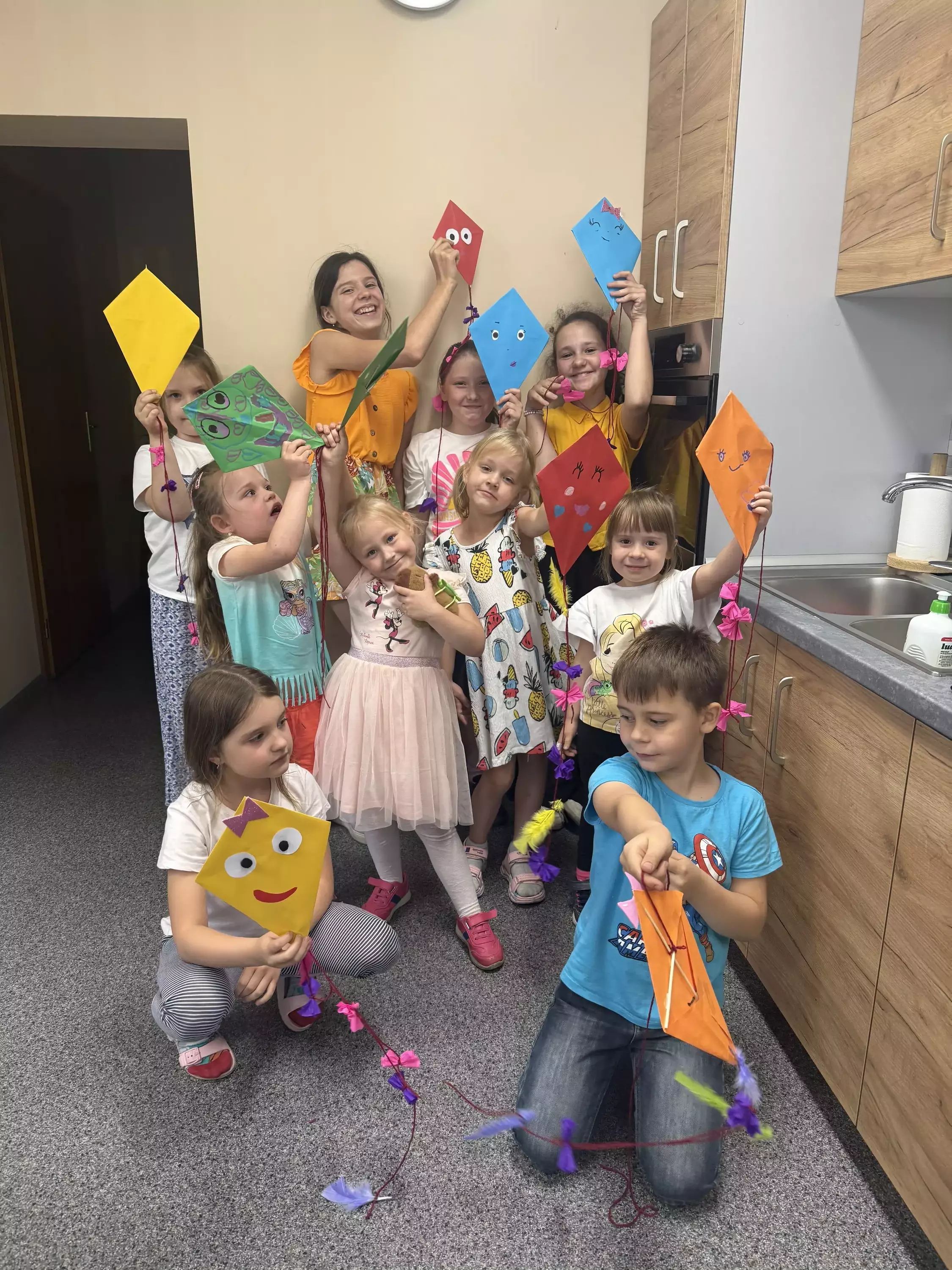 Dzieci bawią się na sali zabaw.Dzieci bawią się na sali zabaw.Dzieci bawią się na sali zabaw.Dzieci bawią się na sali zabaw.Dzieci wykonują latawce.Wspólne zdjęcie dzieci z latawcami.
