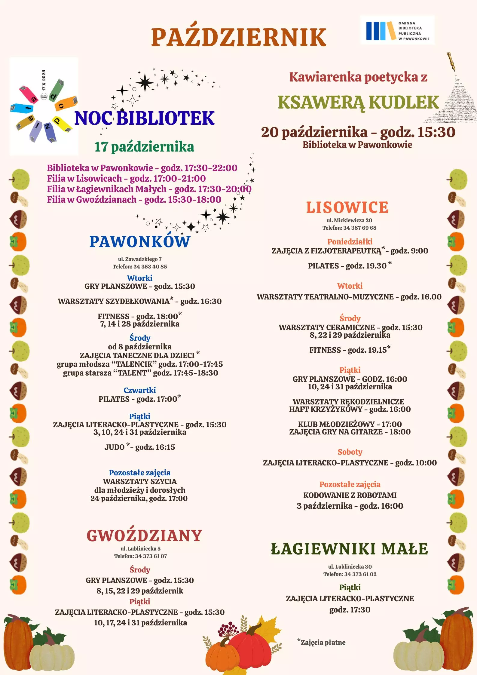 Biblioteka w Pawonkowie - godz. 17:30-22:00