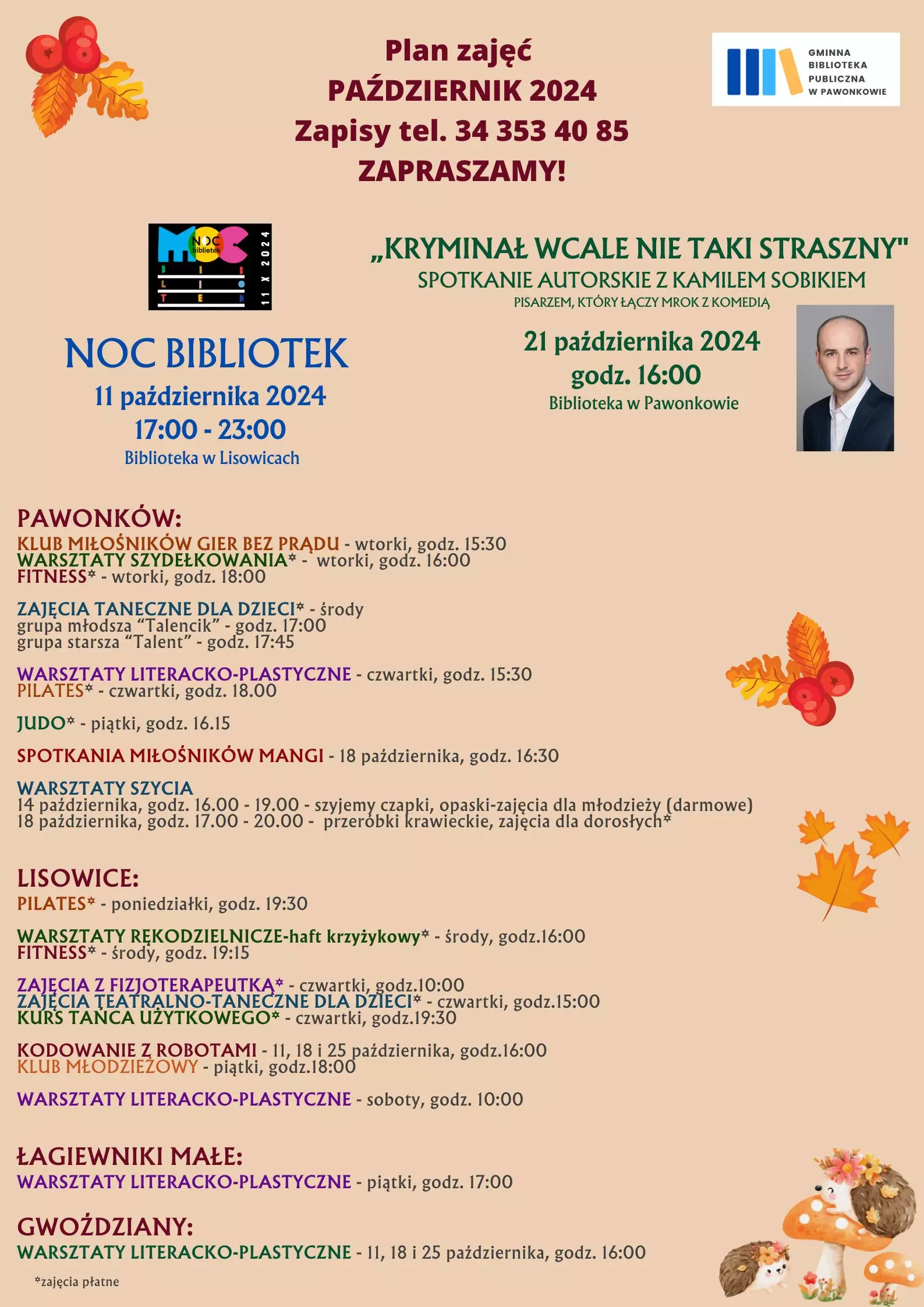 „Kryminał wcale nie taki straszny" spotkanie autorskie z kamilem sobikiem pisarzem, który łączy mrok z komedią 21 października 2024 godz. 16:00 Biblioteka w Pawonkowie