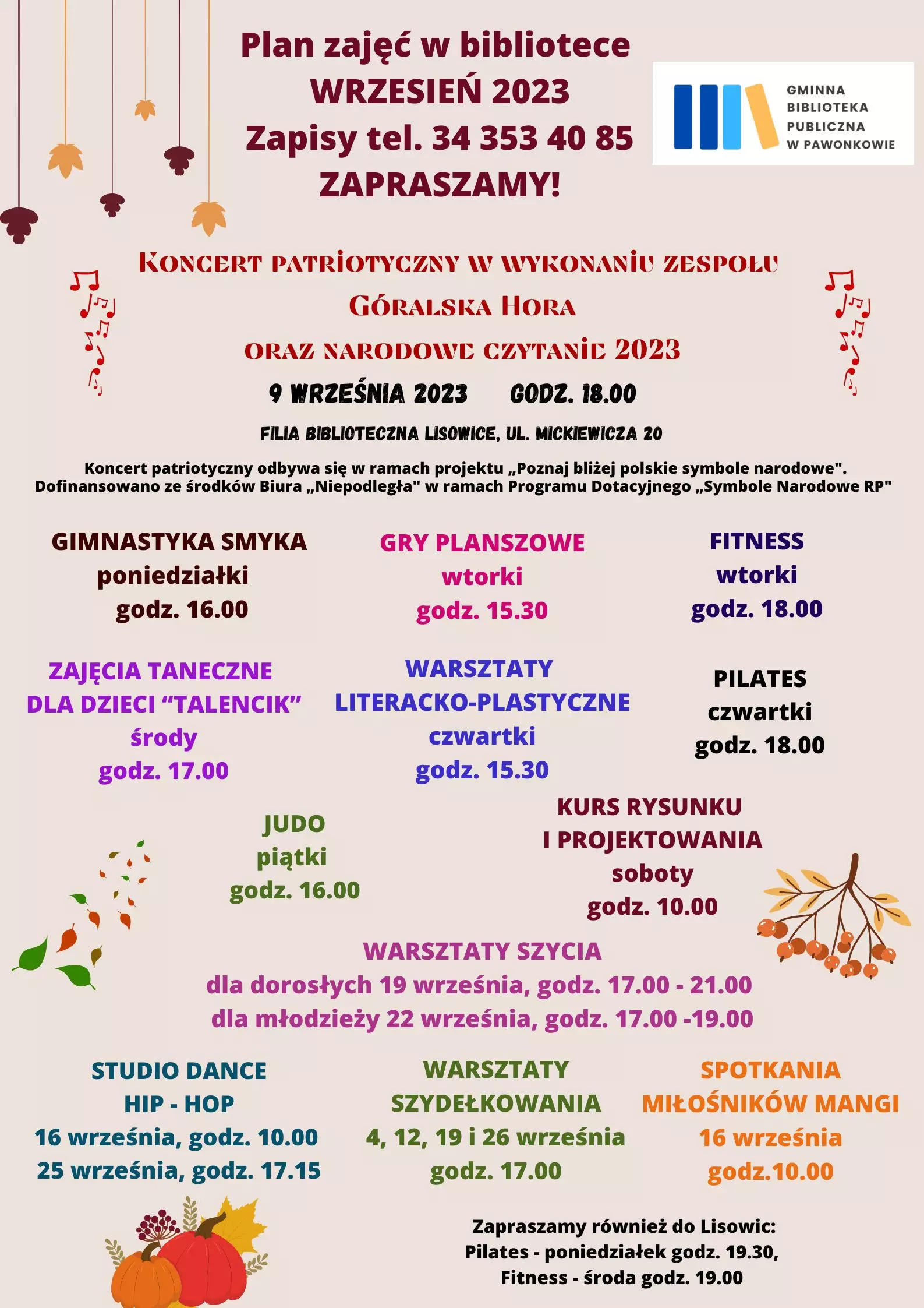 Prezentujemy rozpiskę wrześniowych spotkań i zajęć, które rozpoczynamy od poniedziałku 4 września.