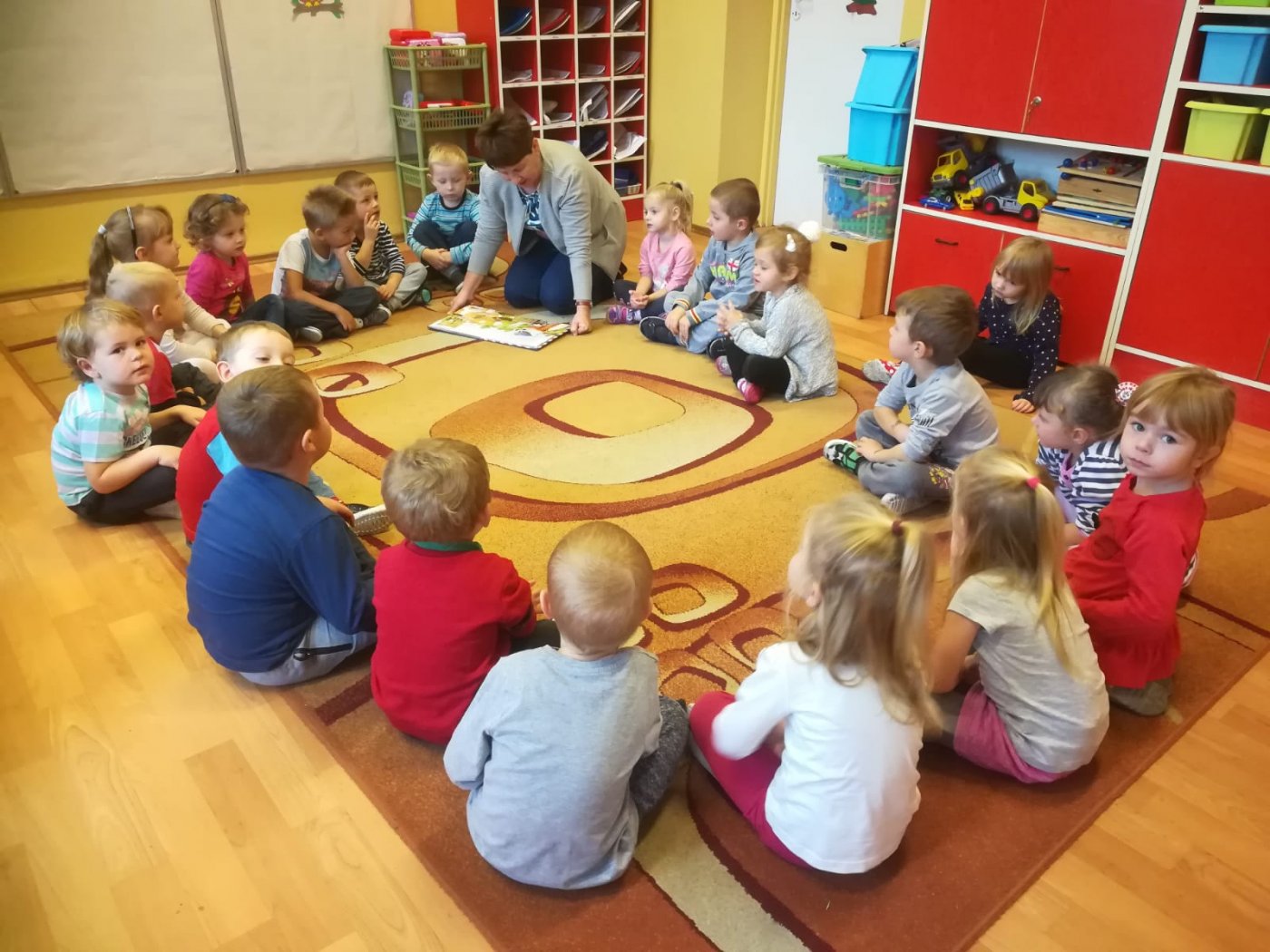 Swoją pierwszą wizytę w bibliotece w Lisowicach złożyła młodsza grupa przedszkolna. Dzieci bardzo chętnie zwiedzały nowe dla nich miejsce. Przede wszystkim zainteresowały się półkami z kolorowymi i bogato ilustrowanymi książkami dla najmłodszych. Panie Przedszkolanki wypożyczyły też kilka publikacji dla dzieci. Również bibliotekarka odwiedziła maluchy w przedszkolu i przeczytała im opowiadanie pt.: „Miś listonosz”, które bardzo im się podobało.