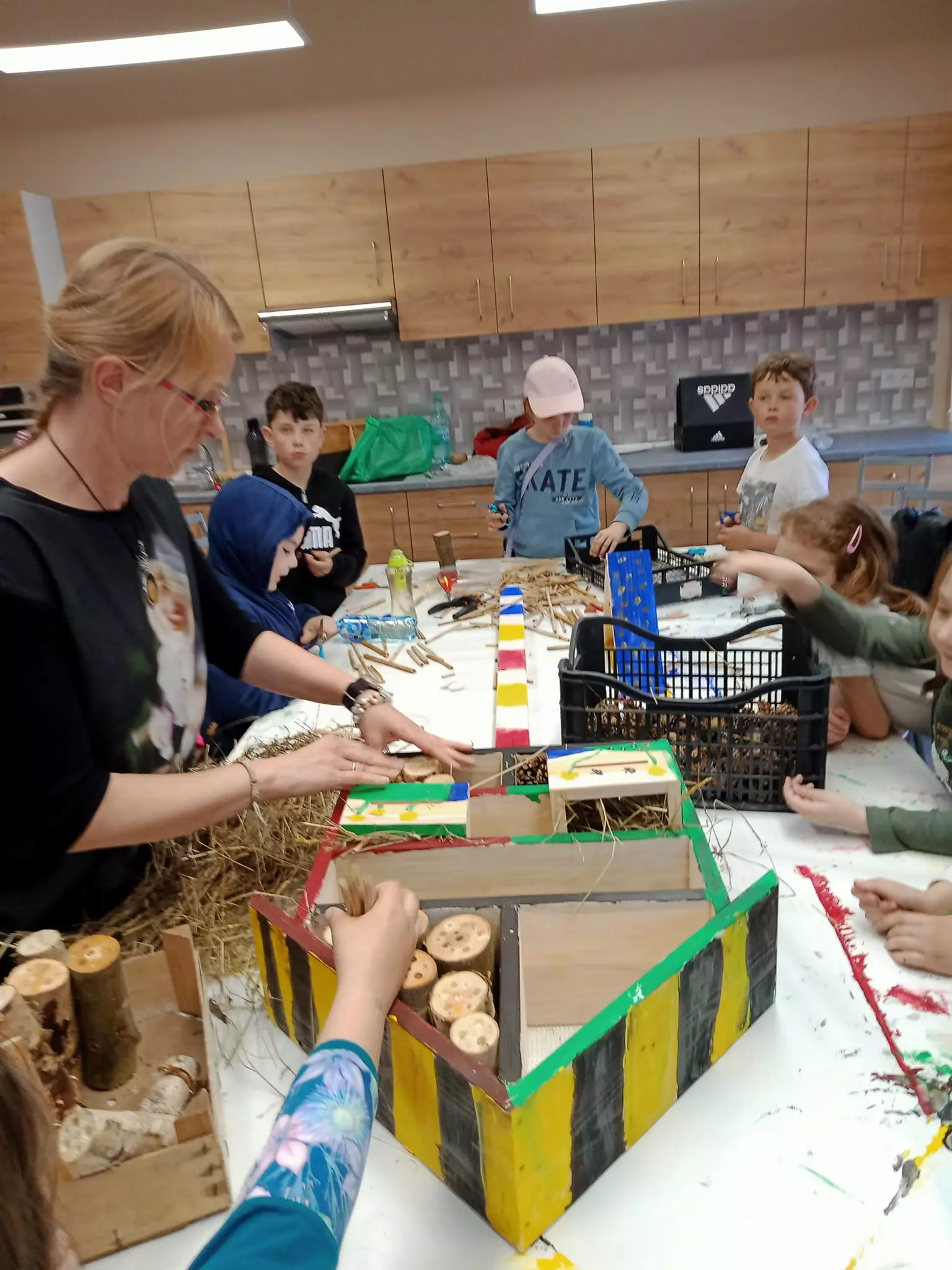 Kolejne warsztaty „Pracowita pszczółka w bibliotece” przybliżyły uczestnikom świat pszczół, cechy charakterystyczne, gdzie zamieszkują i jak wyglądają ich gniazda. Można było dowiedzieć się jak je rozpoznawać oraz jak z nimi postępować, aby uniknąć użądlenia. Dzieci pomalowały domek dla owadów, wypełniły rurkami trzcinowymi, sianem, szyszkami i drewnem, tak aby pszczółki mogły zamieszkać obok biblioteki.