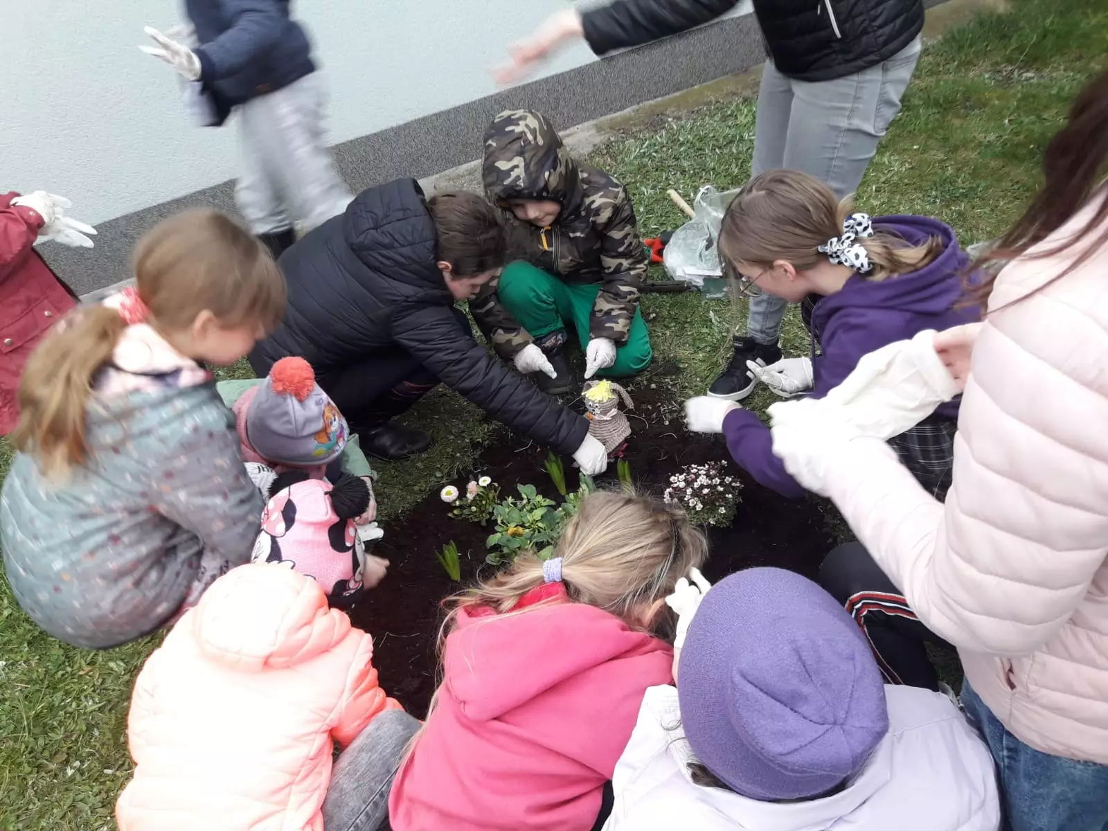 Projekt „Przygoda z przyrodą” rozpoczął się wykonaniem pięknej świątecznej rabatki wielkanocnej obok Biblioteki. Zostały zasiane nasiona oraz posadzone kwiaty. Dzieci po zapoznaniu się z dostępną literaturą przyrodniczą wzięły udział w grach i zabawach.