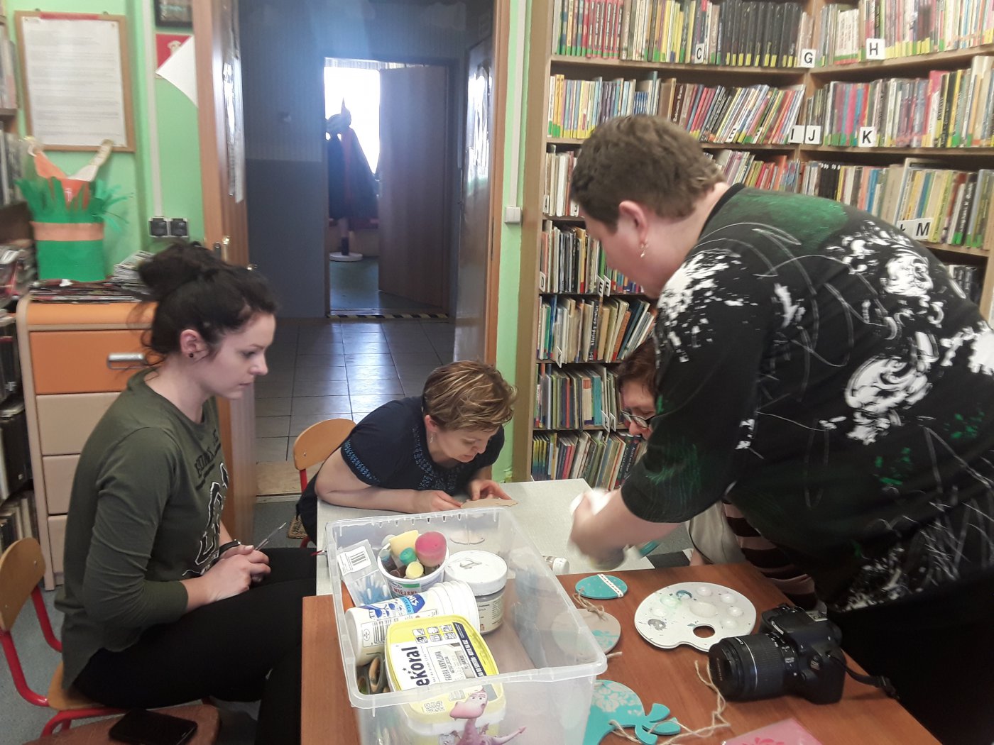21 marca w bibliotece w Łagiewnikach Małych odbyły się warsztaty rękodzielnicze, które prowadziła Pani Katarzyna Koza z LCSK. Panie wykonywały ozdoby świąteczne: jajka z tektury i wełny oraz drewniane kurki i jaja ozdobione farbami akrylowymi