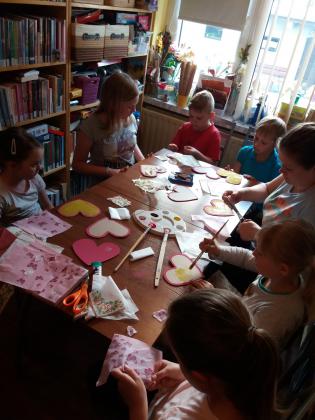We wtorek 23.05.2017r. w bibliotece w Gwoździanach odbyły się warsztaty plastyczne. Uczestnicy zajęć malowali farbami akrylowymi tekturowe serduszka, a następnie ozdabiali je metodą decoupage. Prace były piękne i kolorowe i na pewno podobały się wszystkim mamusiom.
