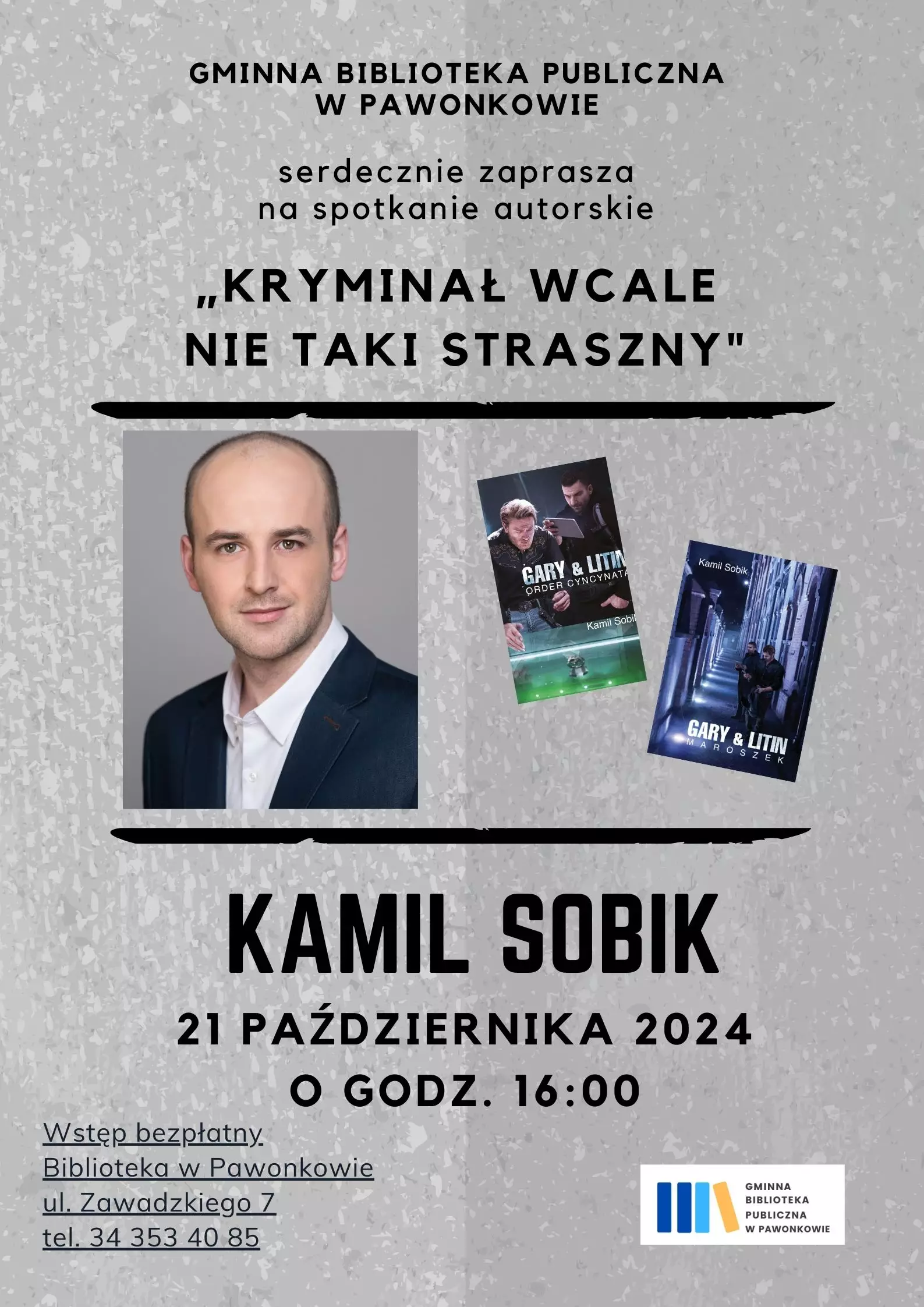 Gminna Biblioteka Publiczna w Pawonkowie serdecznie zaprasza na spotkanie autorskie z Kamilem Sobikiem
