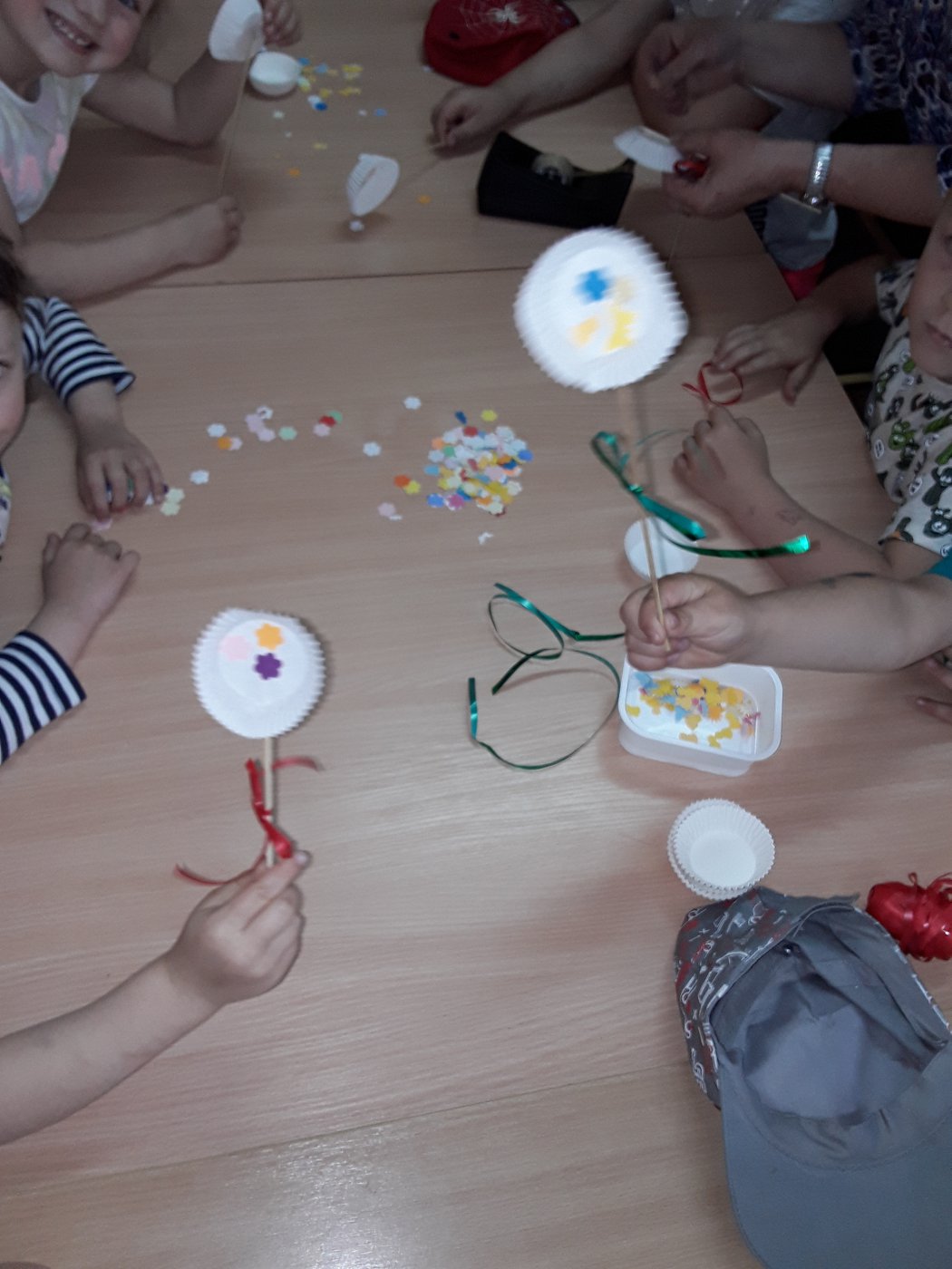 Spotkanie młodszej grupy przedszkolaków w bibliotece w Lisowicach wypadło przed zbliżającym się Dniem Matki. Na początku zajęć dzieci z wielką uwagą i ciekawością wysłuchały dwóch baśni: „Tomcio Paluch” i „Calineczka” z książki pt. : Baśnie - Najpiękniejsza klasyka dla dzieci. Następnie uczestnicy przygotowali niespodzianki dla swoich mam. Były to kolorowe kwiatki na patyku, których wykonanie nie sprawiło nikomu większych trudności.