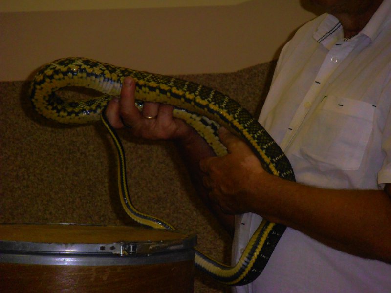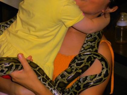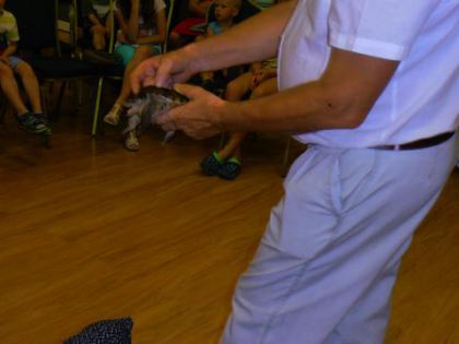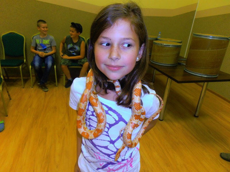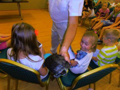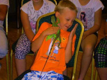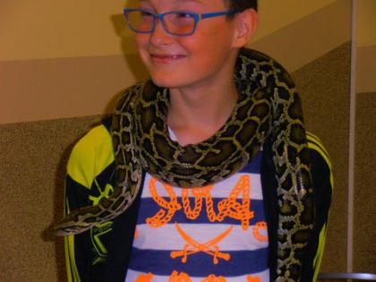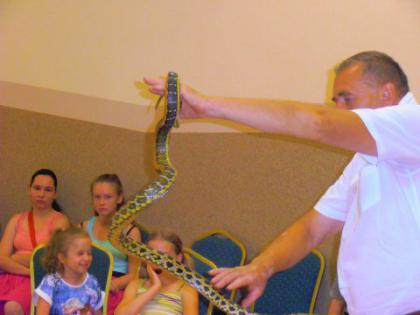 Dzieci miały okazję poznać wiele ciekawostek z życia gadów w środowisku naturalnym oraz dowiedzieć się jakie warunki należy zapewnić tym zwierzętom w hodowli. Zaprezentowane zostały następujące gatunki: żółwie: czerwonolicy i jaszczurowaty, węże: połoz zbożowy i tajwański, wąż królewski, pyton tygrysi w trzech odcieniach barwnych (w tym albinos), jaszczurki: agama błotna, tarczołusk sudański. Odważni mogli pogłaskać gady, a nawet założyć sobie węża na szyję. Była to zarówno niezwykła lekcja przyrody jak i opieki nad zwierzętami, które nie są maskotkami ale żywymi stworzeniami wymagającymi codziennej pielęgnacji. Spotkanie dostarczyło uczestnikom wielu wrażeń i emocji.