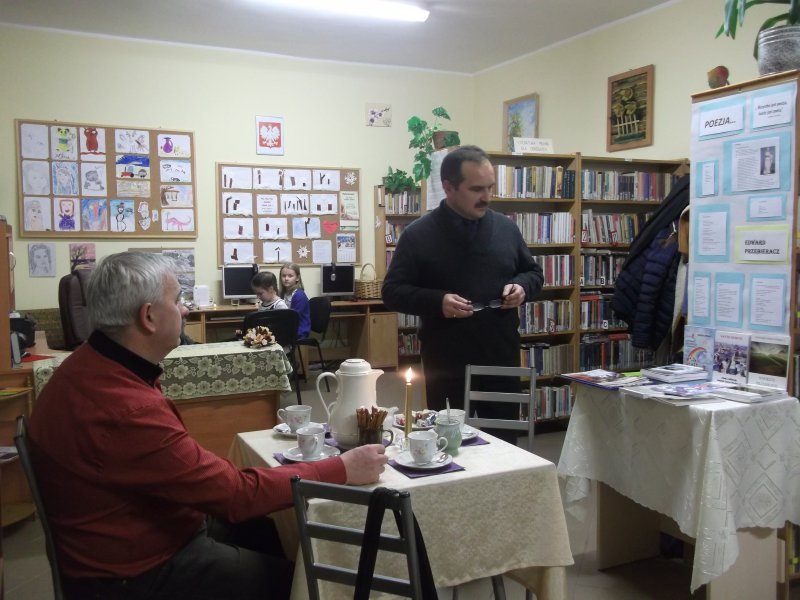 Dnia 27.01.2015 w Bibliotece Publicznej w Kośmidrach kolejny już raz gościliśmy poetę, pana Edwarda Przebieracza. Zorganizowane "Spotkanie z poezją" adresowane było do wszystkich czytelników. Uroczystość rozpoczęła się recytacją wierszy autorstwa naszego gościa w wykonaniu dzieci z Kółka Bibliotecznego ze Szkoły Podstawowej w Kośmidrach: Natalii Smyły, Mileny Bronder, Karoliny i Sebastiana Kubicy.