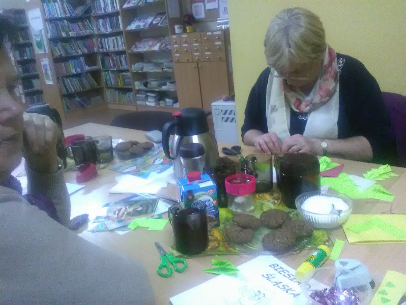 10 listopada odbyło się w bibliotece w Lisowicach pierwsze spotkanie z seniorkami. Panie robiły kartki świąteczne, dzieliły się pomysłami i ciekawostkami, a wspólny śpiew tworzył miłą atmosferę. Panie od razu umówiły się na następne spotkanie.