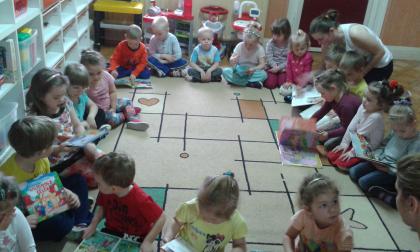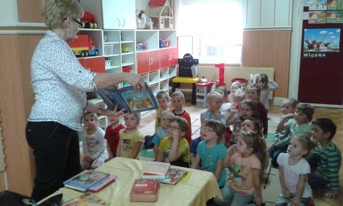 Z okazji Światowego Dnia Książki dla Dzieci bibliotekarka Jadwiga Kukowka zaprezentowała nowości książkowe dla najmłodszych w Przedszkolu w Gwoździanach.