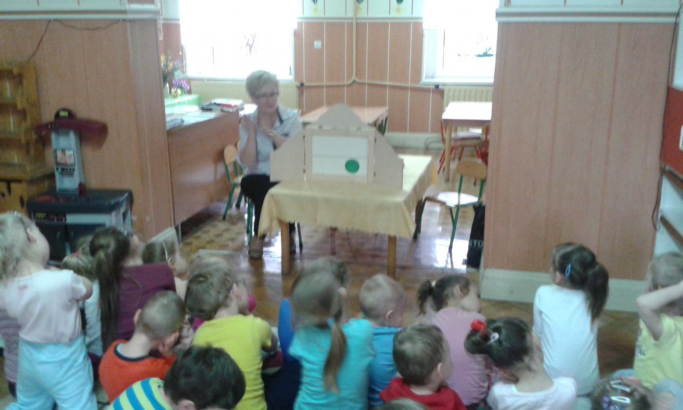 Maluszki z zaciekawieniem wysłuchały czytane opowiadania Kamishibai pt."Mój przyjaciel Kemuschi" oraz "Groszek".