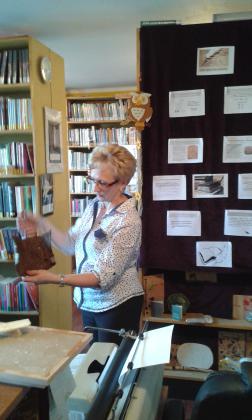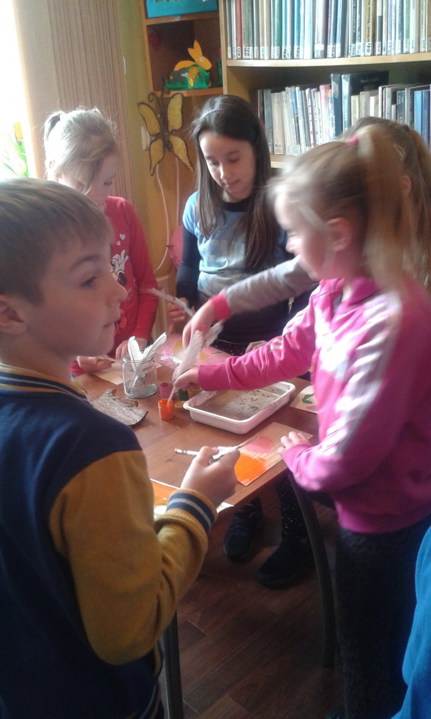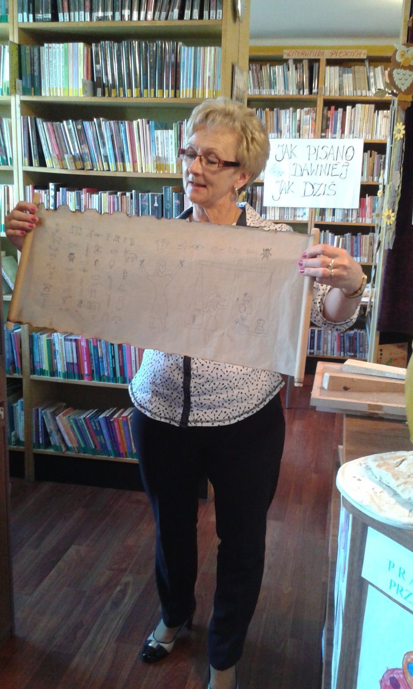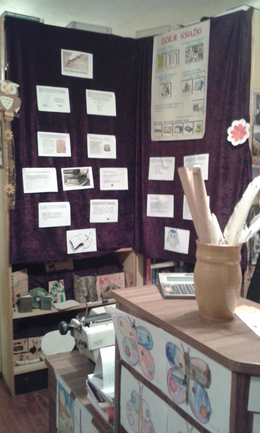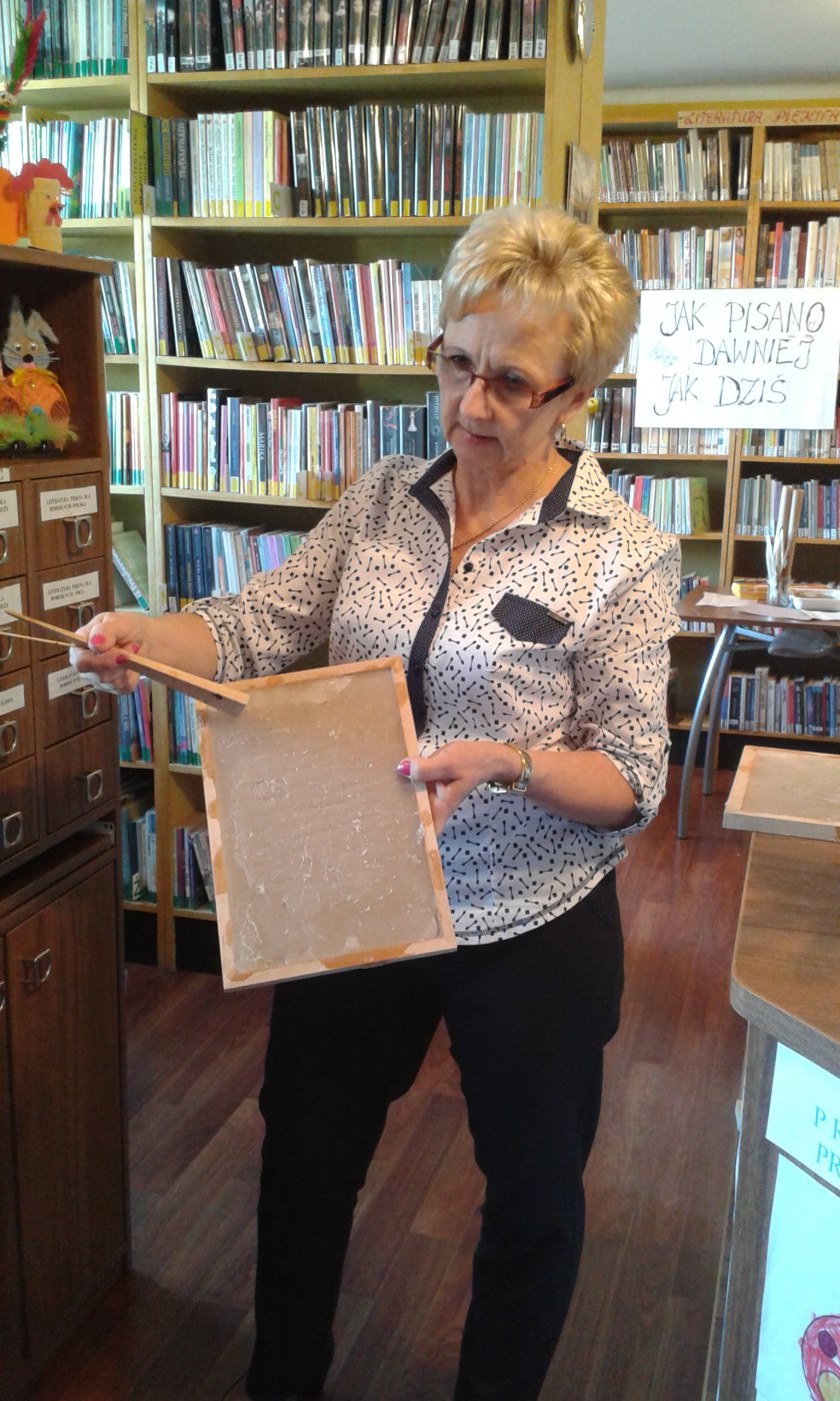 Z okazji Światowego Dnia Książki i Praw Autorskich w dniach 22.04 oraz 25.04.2016r. w bibliotece w Gwoździanach bibliotekarka Jadwiga Kukowka przeprowadziła pogadankę z uczniami klasy I oraz klasy II i III Szkoły Podstawowej na temat "Dziejów Książki" oraz dawnych technik i materiałów pisarskich.