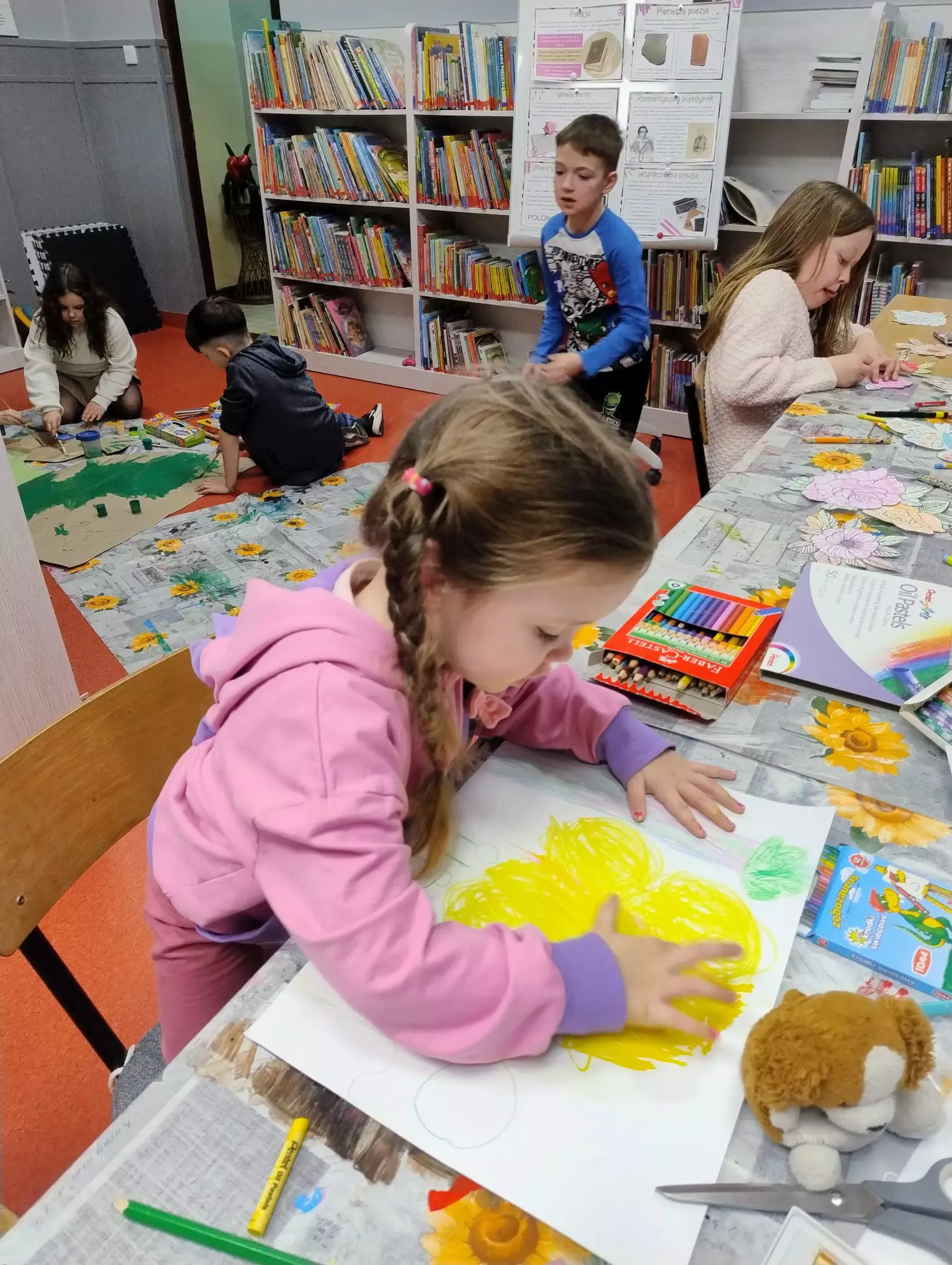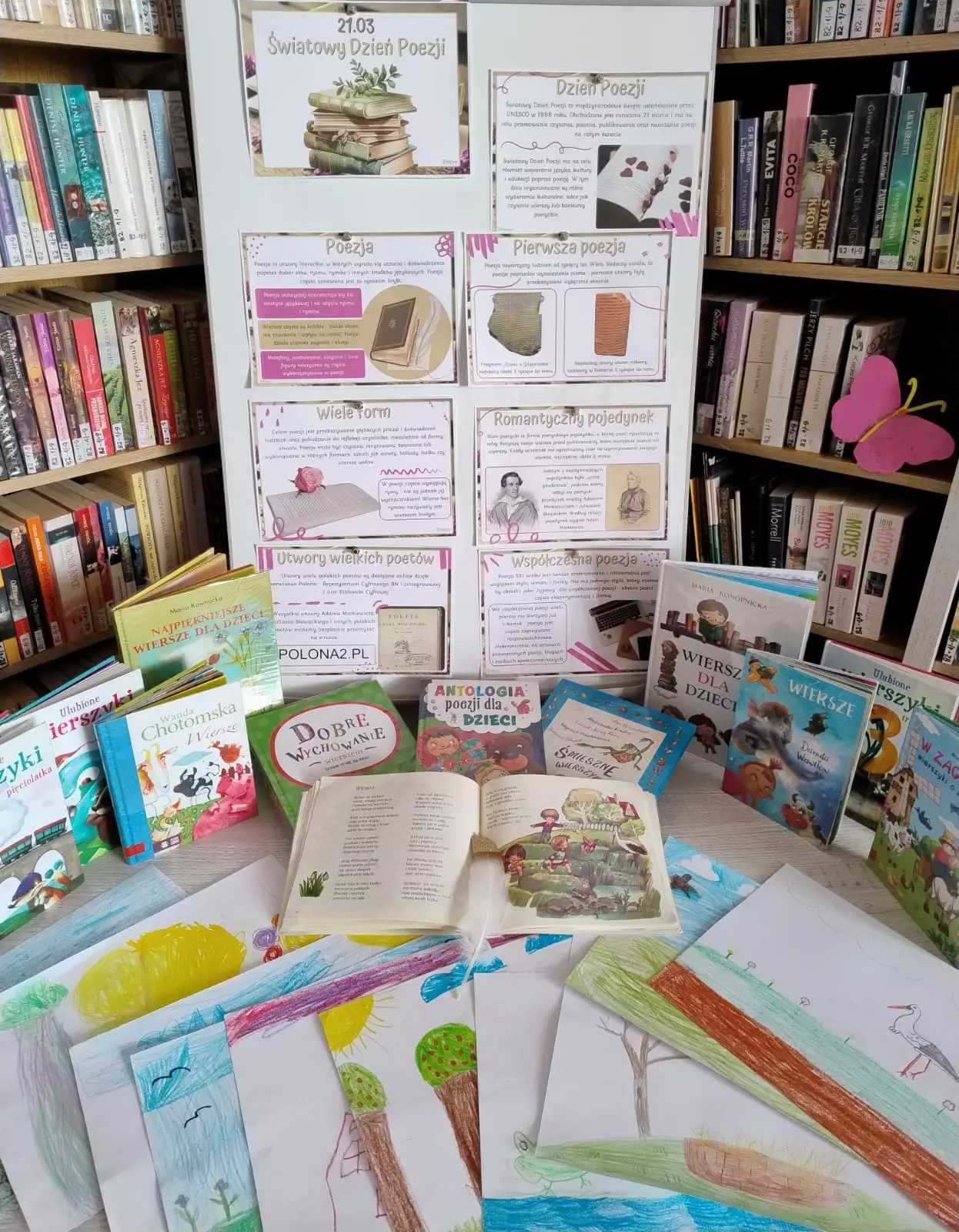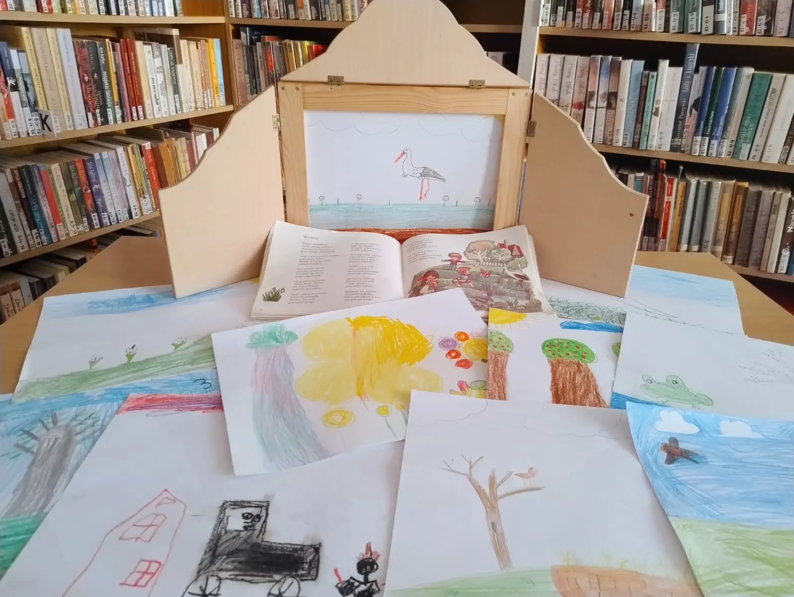 W bibliotece w Łagiewnikach Małych zrobiło się naprawdę wiosennie, a to za sprawą dzieci, które uczestniczyły w ostatnich zajęciach literacko-plastycznych. Tematem zajęć było nadejście wiosny oraz Światowy Dzień Poezji. Dzieci szukały wiosny w poezji, następnie stworzyły własny teatrzyk kamishibai malując ilustracje do wiersza "Wiosna" Czesława Janczarskiego. Powstała również postać Pani Wiosny, która będzie witać wszystkich czytelników odwiedzających naszą bibliotekę