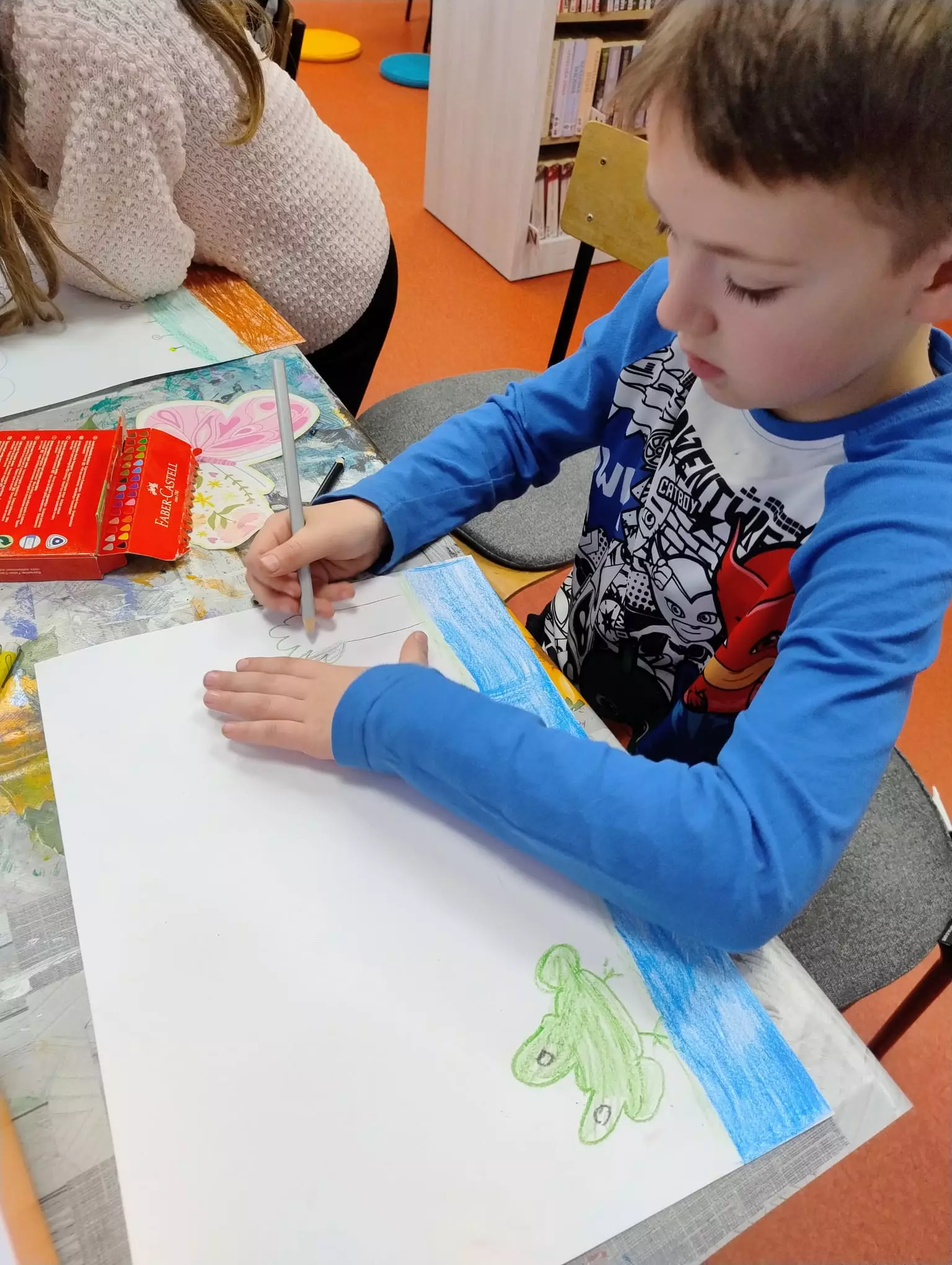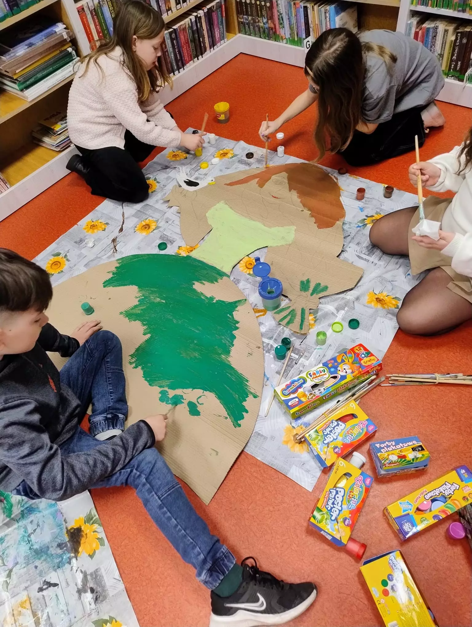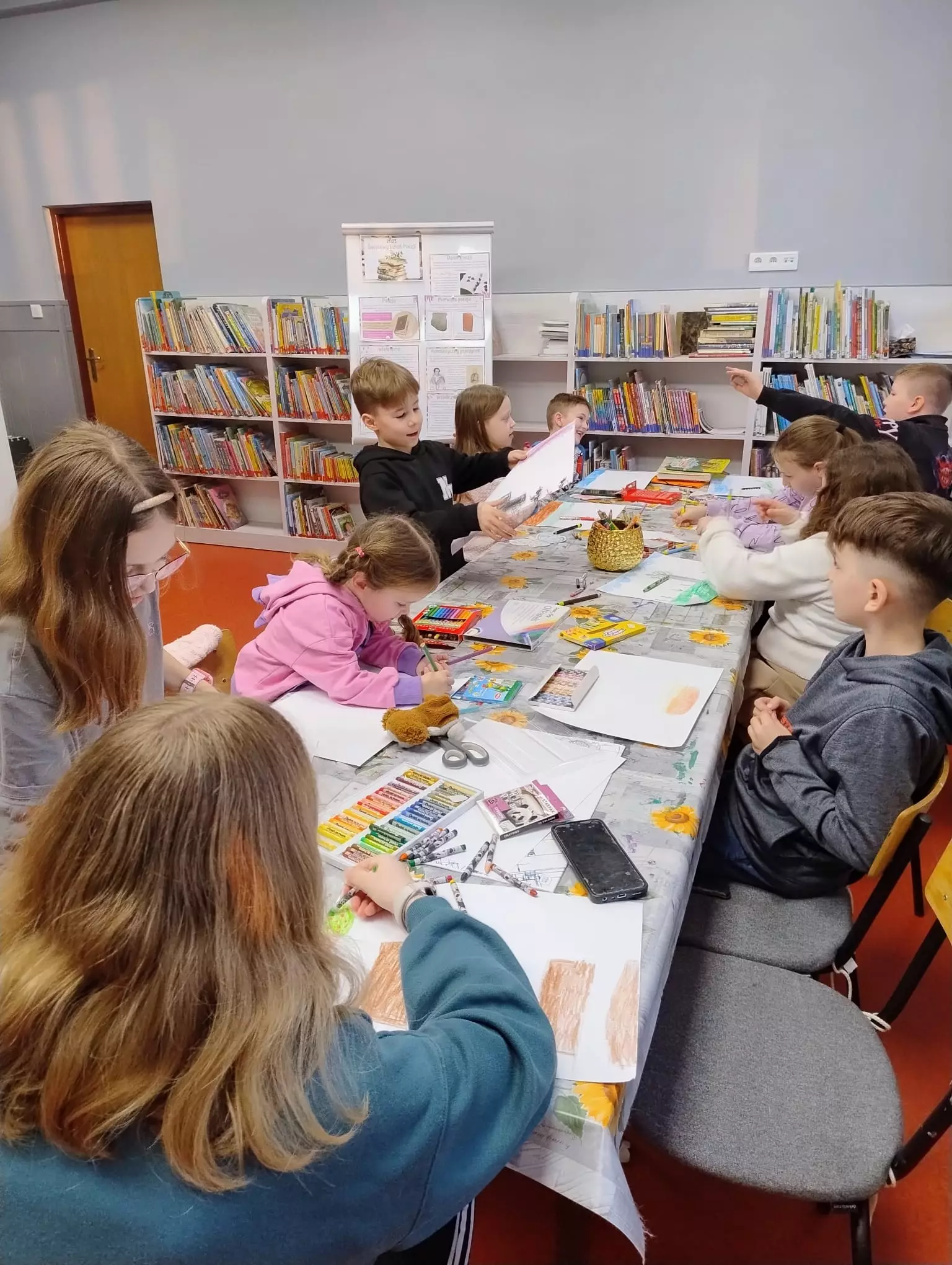W bibliotece w Łagiewnikach Małych zrobiło się naprawdę wiosennie, a to za sprawą dzieci, które uczestniczyły w ostatnich zajęciach literacko-plastycznych. Tematem zajęć było nadejście wiosny oraz Światowy Dzień Poezji. Dzieci szukały wiosny w poezji, następnie stworzyły własny teatrzyk kamishibai malując ilustracje do wiersza "Wiosna" Czesława Janczarskiego. Powstała również postać Pani Wiosny, która będzie witać wszystkich czytelników odwiedzających naszą bibliotekę