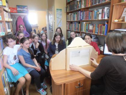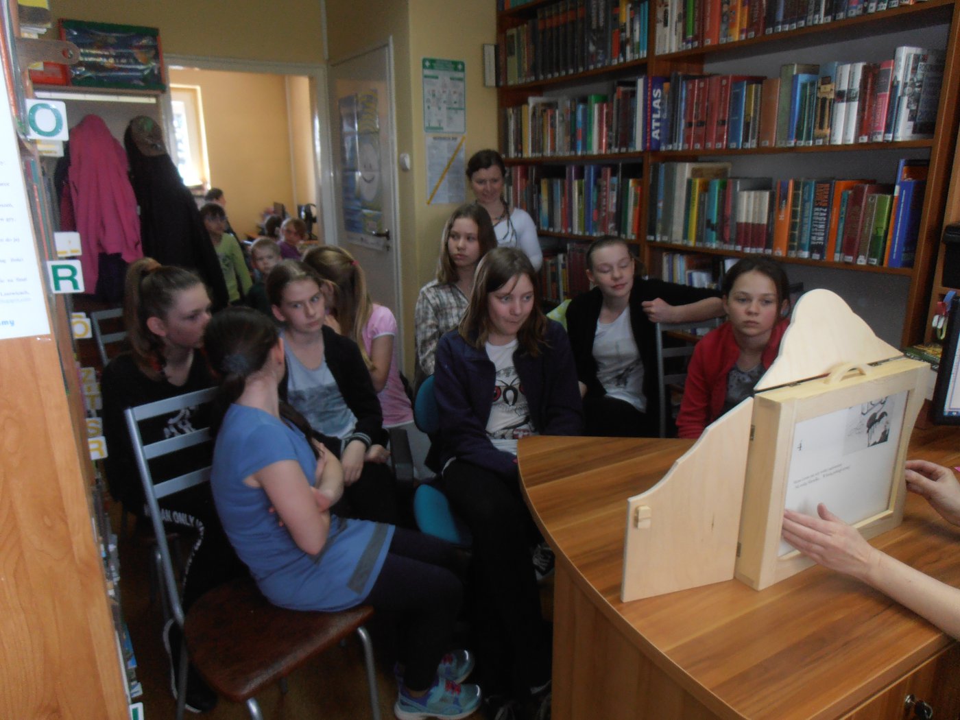22 kwietnia uczennice Szkoły Podstawowej pod opieką Pani Anny Trzepizur odwiedziły Bibliotekę w Pawonkowie. Podczas wizyty zapoznały się z historią teatrzyku kamishibai oraz wysłuchały opowiadań pt. : "Kotka Milusia" i " Szukając Marudka", jednocześnie oglądając ilustracje do czytanego tekstu.