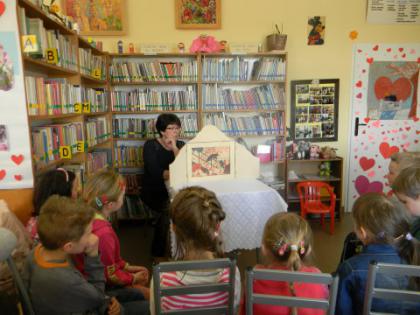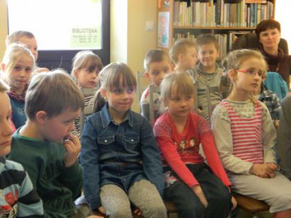 Przedszkolaki i młodsze dzieci ze Szkoły Podstawowej w Kośmidrach odwiedziły Bibliotekę Publiczną, aby wysłuchać ciekawych historyjek opowiadanych za pomocą plansz z obrazkami. Najbardziej podobały się przygody pieska Marudka i Groszka.