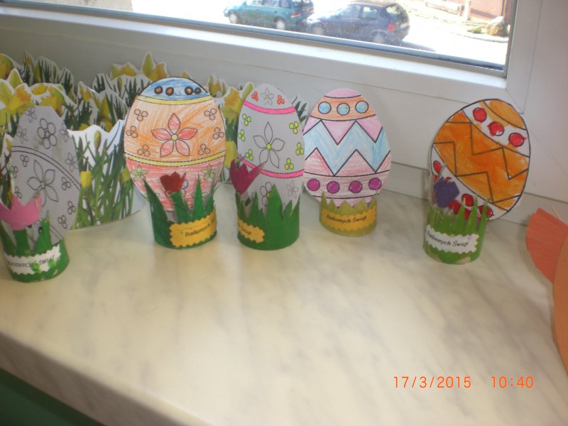 Dzieci uważnie słuchały oraz z zainteresowamiem oglądały ilustracje w książkach z biblioteki. Następnie uczniowie wykonali koszyczki na swoją pisankę wielkanocną.