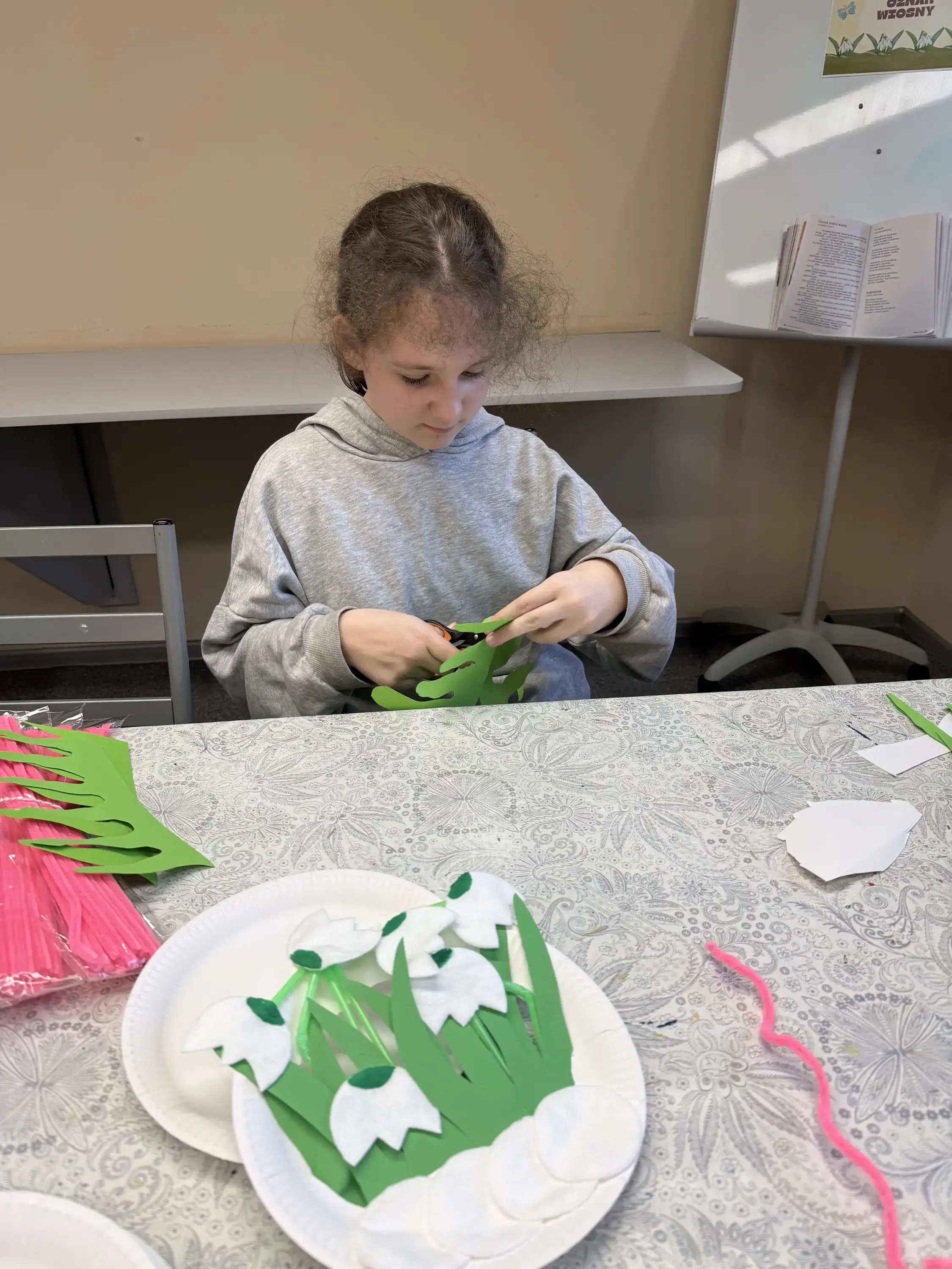 W części plastycznej dzieci wykonały przebiśniegi z papieru i materiałów plastycznych, rozwijając swoją kreatywność i zdolności manualne.