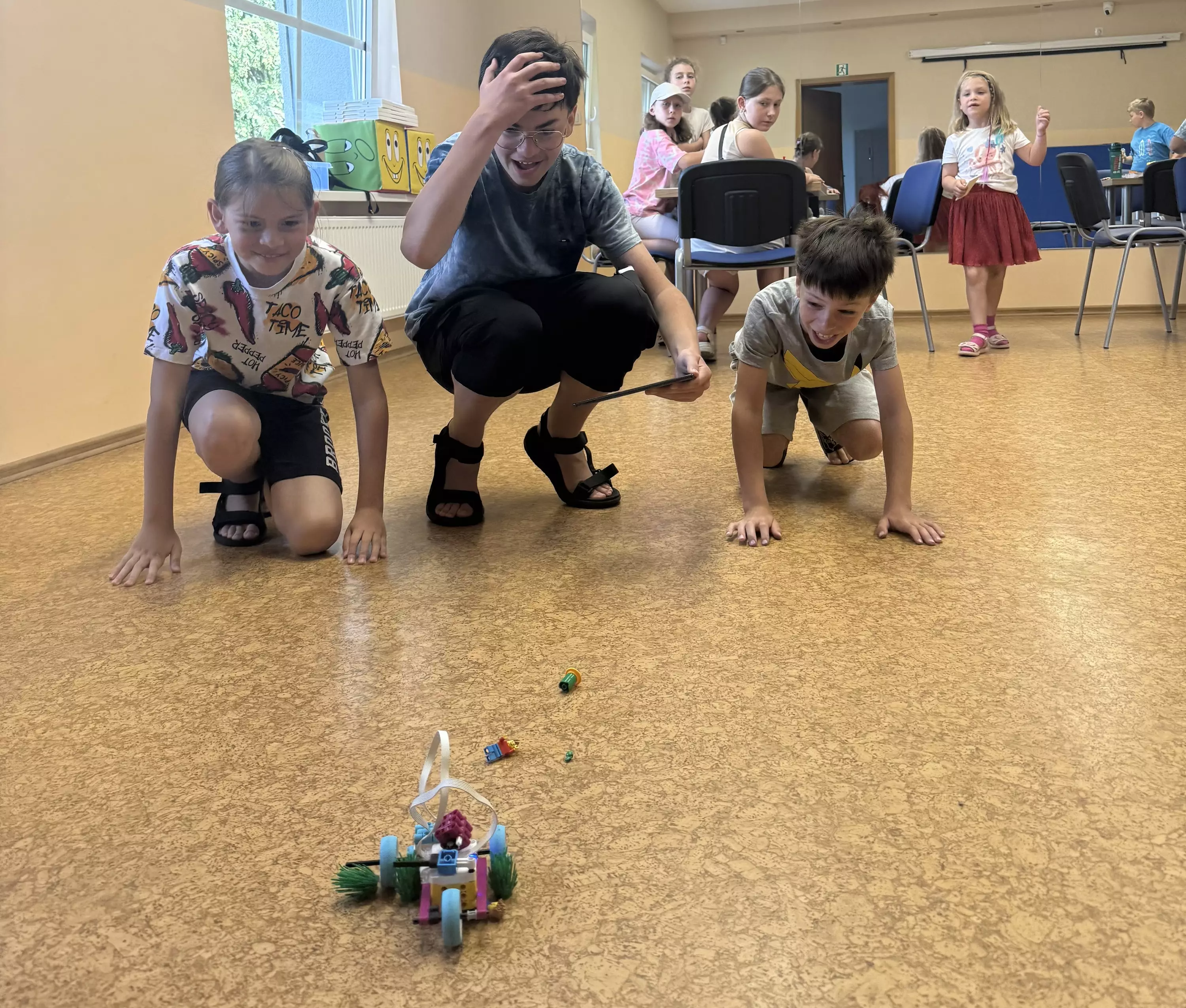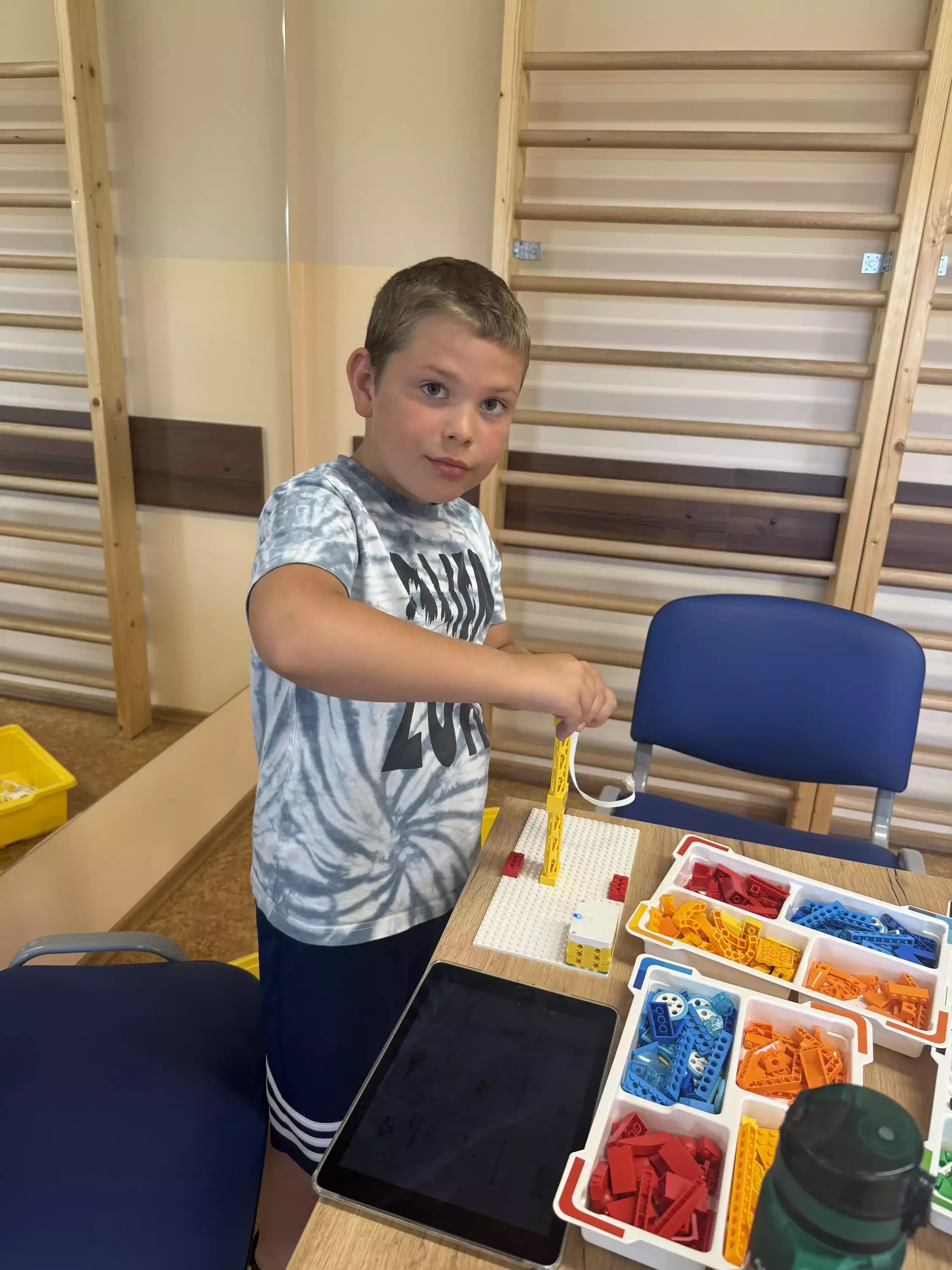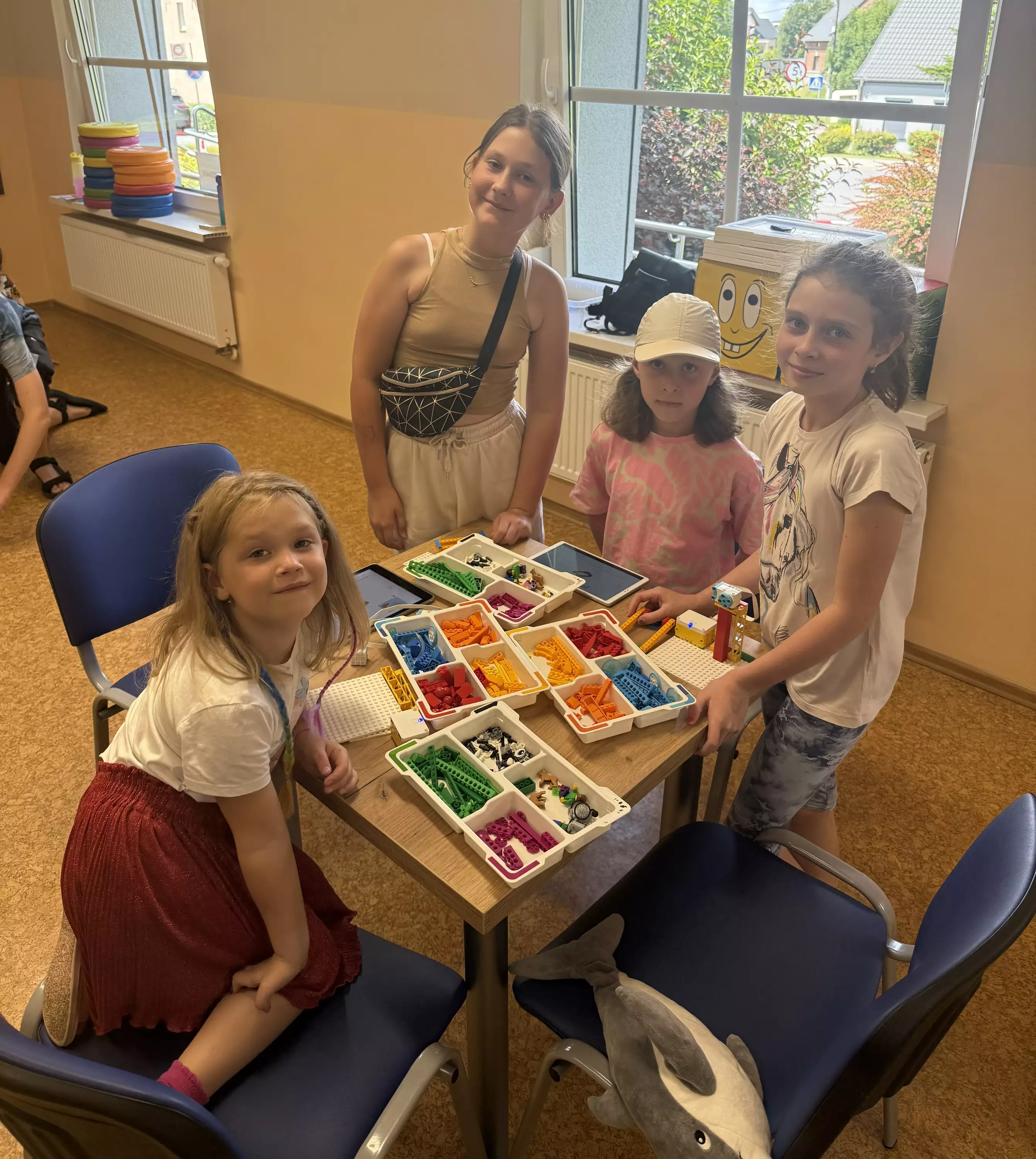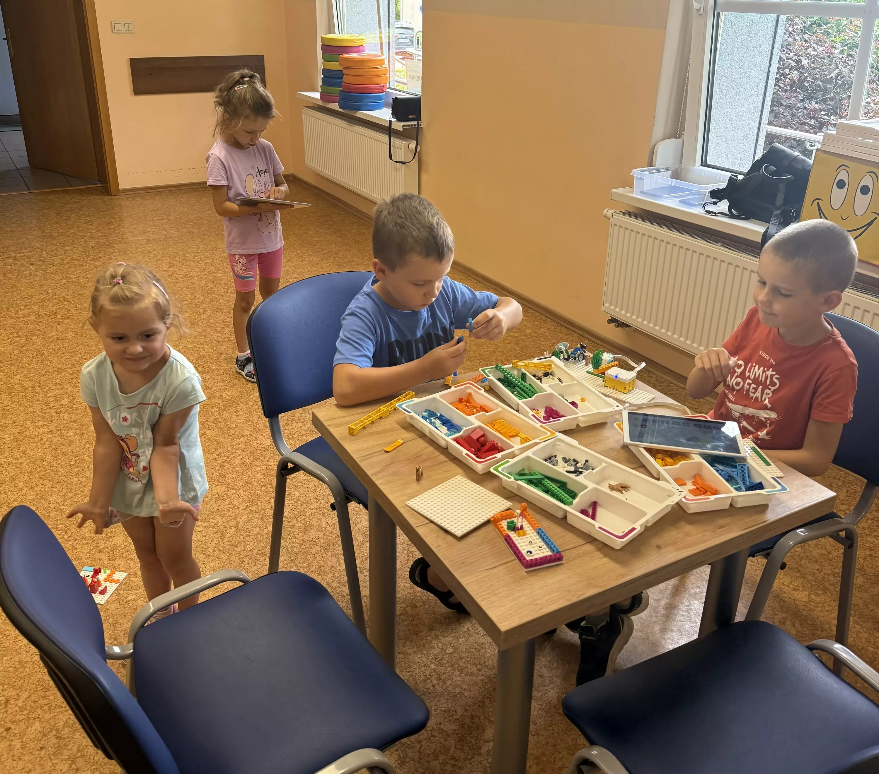 Czwartek to dzień konstrukcji! Na warsztatach LEGO dzieci budowały własne pojazdy z klocków, a potem testowały je w ruchu – świetna zabawa gwarantowana!