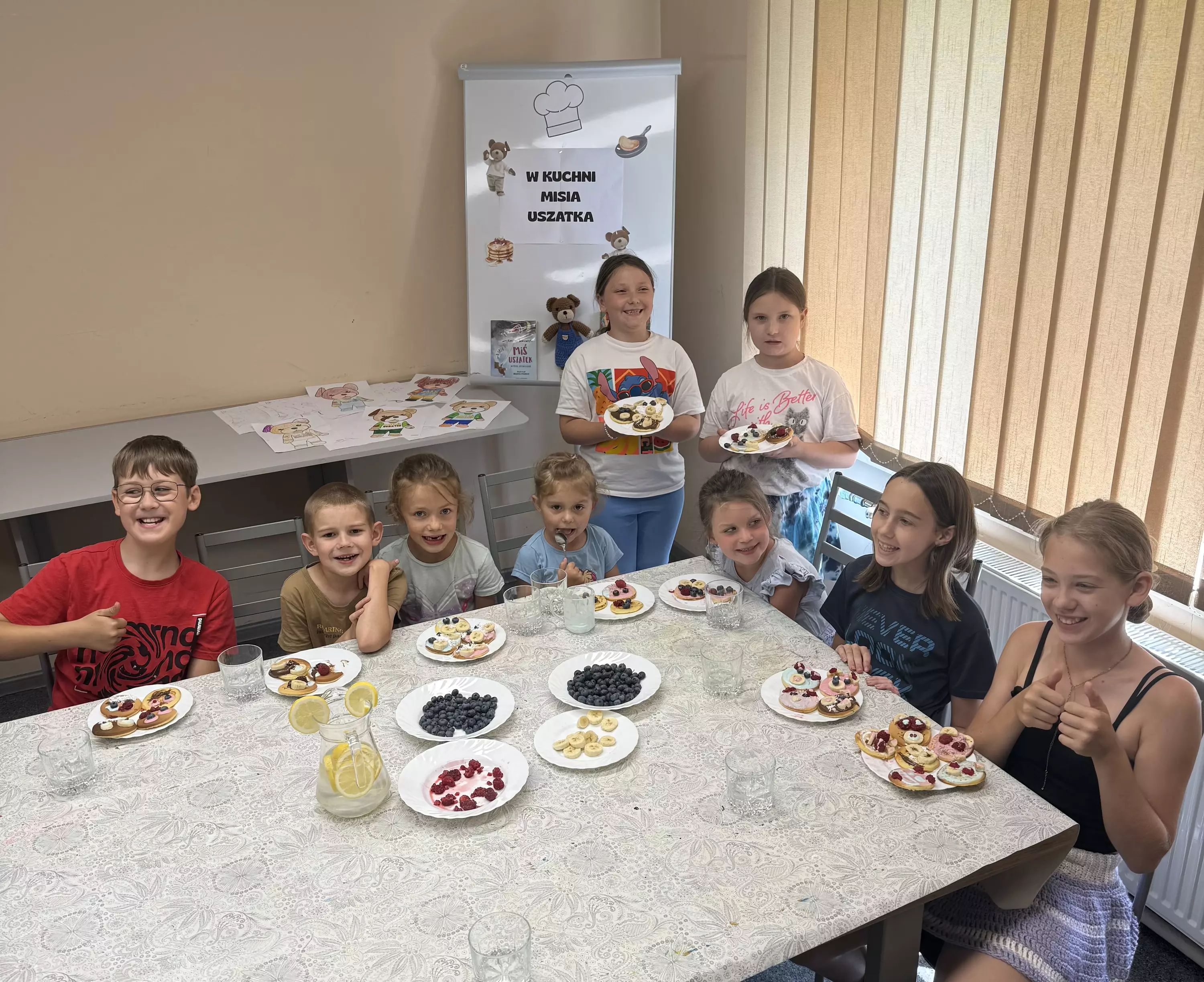 We wtorek na zajęciach literacko-plastycznych odbyło się drugie spotkanie z bohaterami bajek! Tym razem zawitaliśmy do kuchni Misia Uszatka, gdzie dzieci zamieniły się w prawdziwych kucharzy. Razem przygotowaliśmy placuszki w kształcie misiów oraz przepyszną lemoniadę cytrynową, a potem zaprosiliśmy wszystkich do Misiowej Kawiarenki!